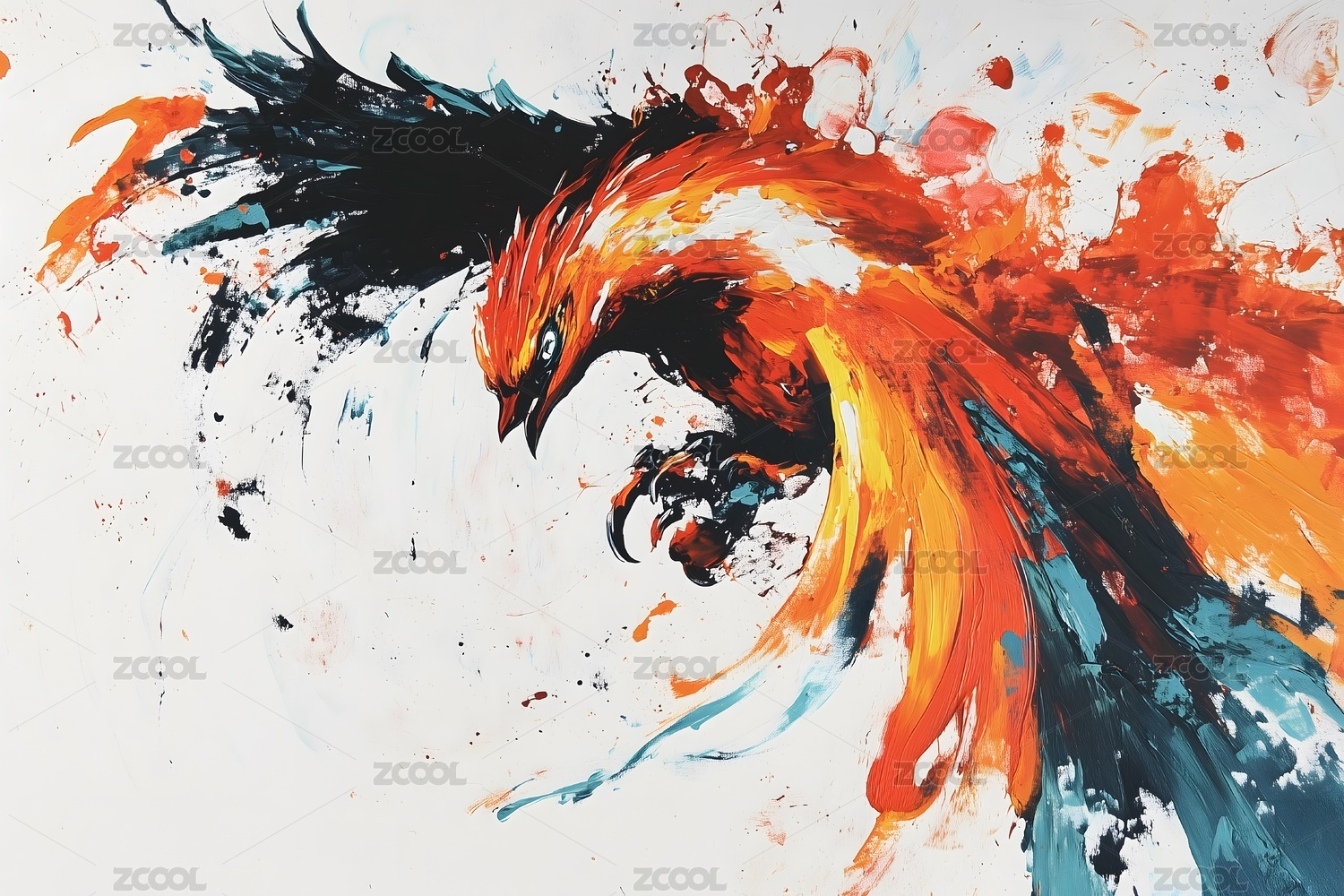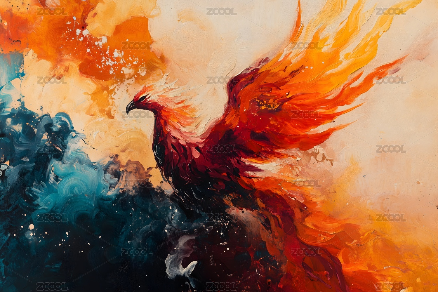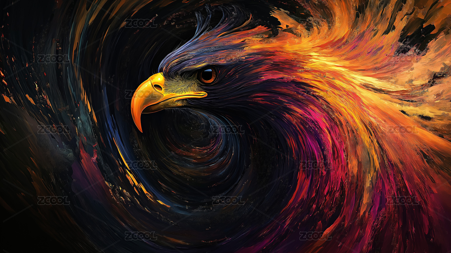 插画,雄鹰,乌鸦,油画,艺术,素材,背景,抽象画,火凤凰,装饰画