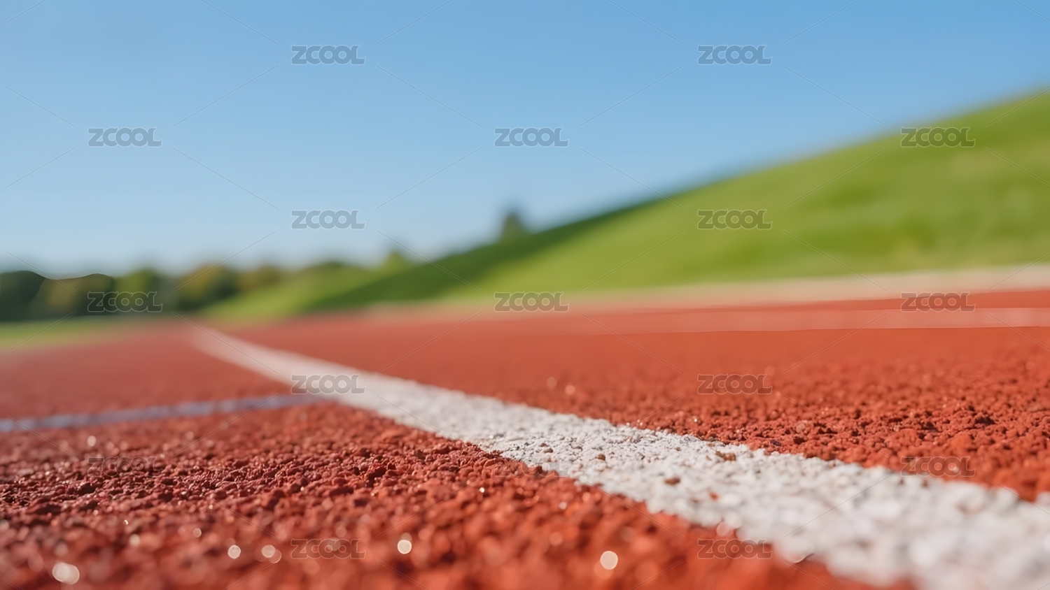 蓝天下笔直向前延伸的塑胶跑道