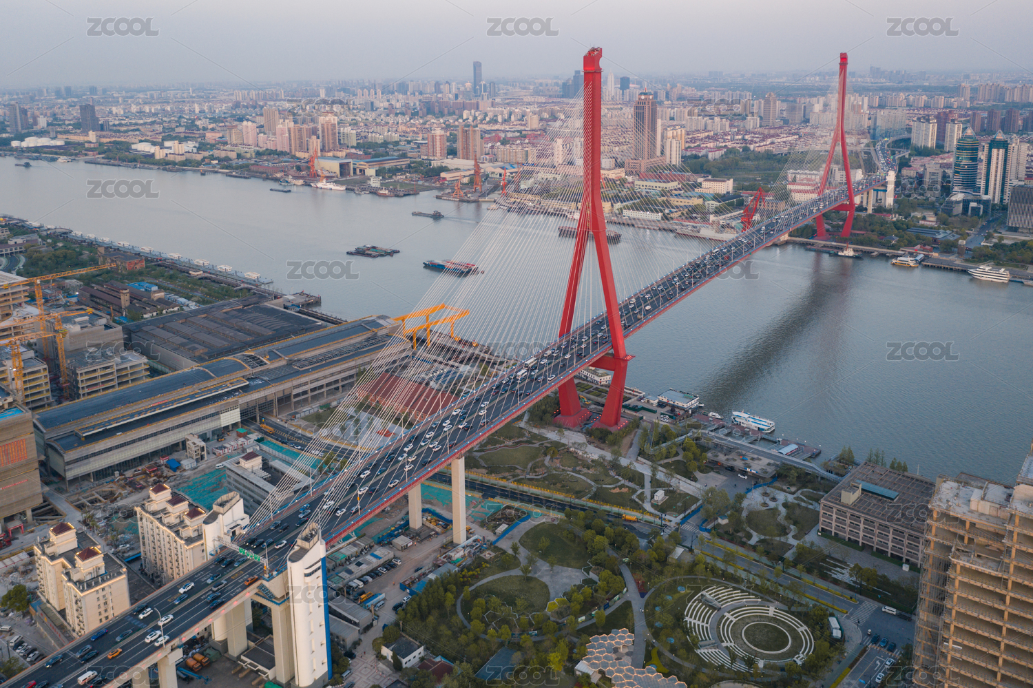 上海,杨浦区,杨浦大桥,基建,斜拉桥,建筑,天空,红色,城市天际线,滨江