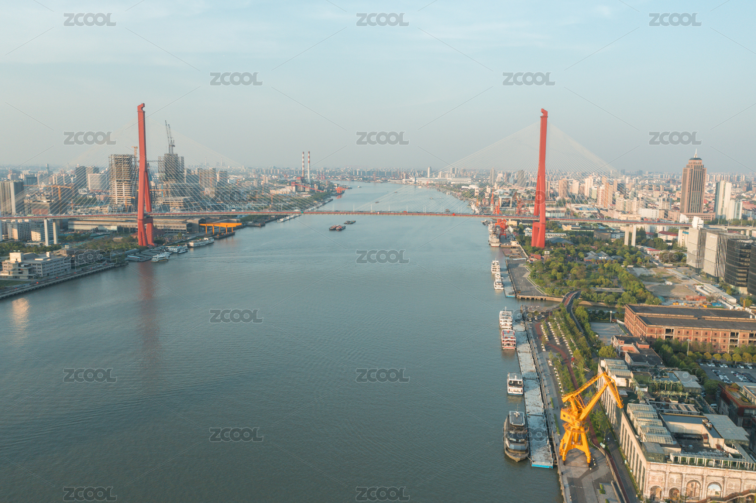 俯瞰中国上海市徐浦大桥横跨黄浦江两岸