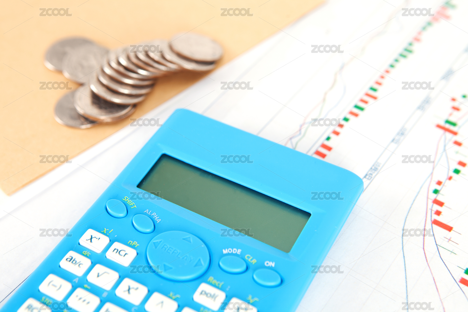 计算器、美金、美元钞票、笔、商业图表、眼镜