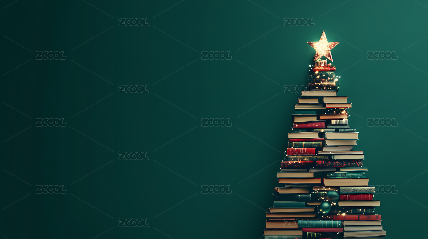 书本堆叠圣诞树与金色星星