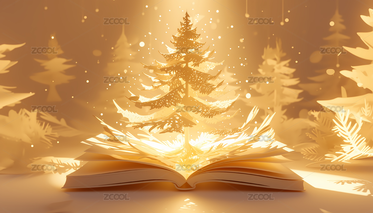 书本树木灯光知识剪纸3D插画