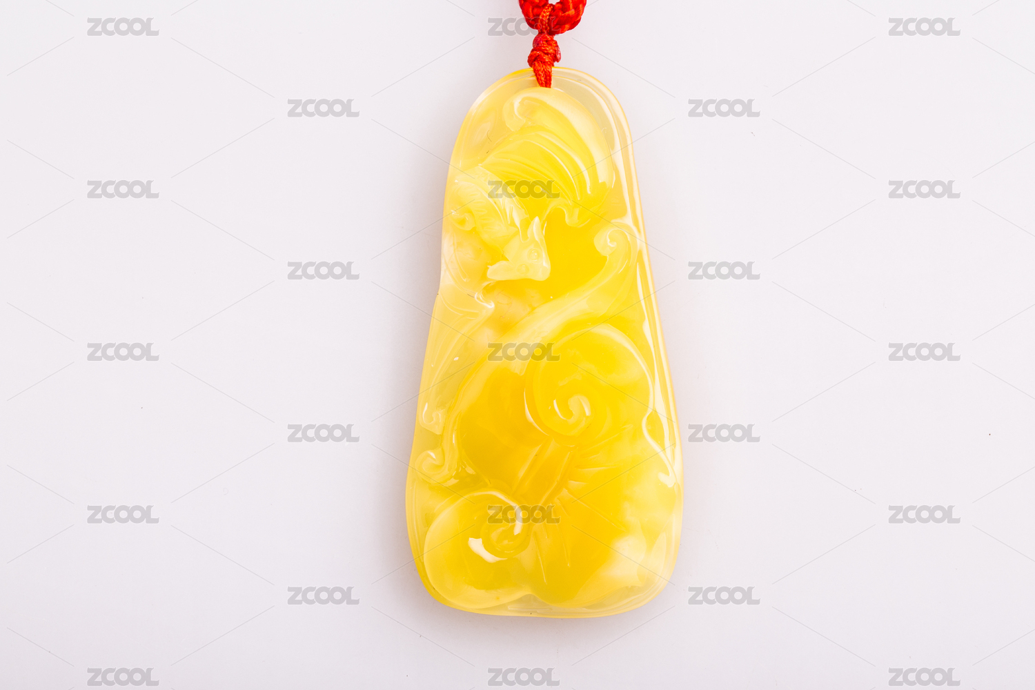 琥珀蜜蜡吊坠石头原石鸡油黄色中式复古佛家禅意的天然珠宝放在白背景上