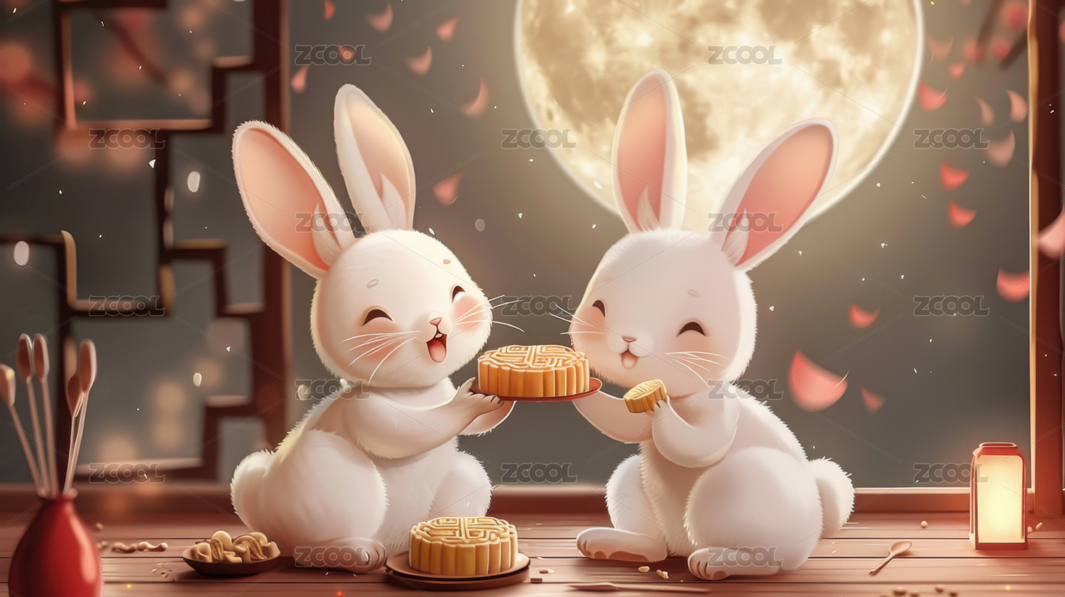 兔子玉兔月亮灯笼花可爱月饼3D立体风格