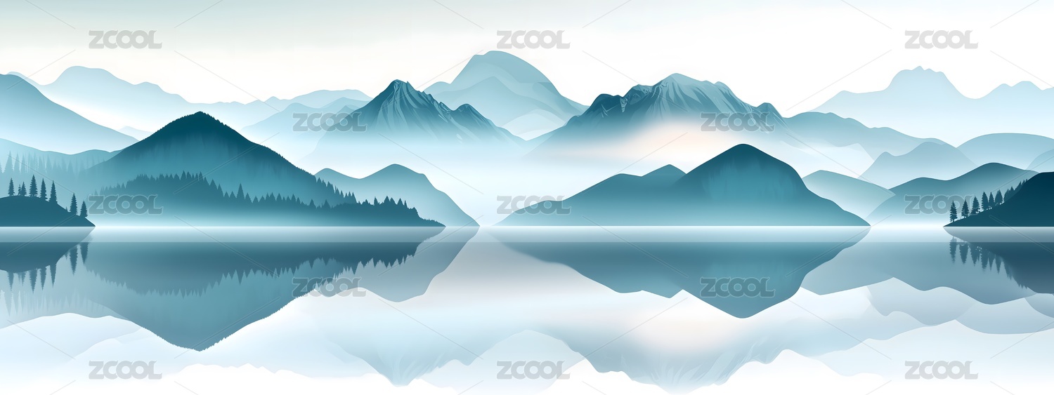 蓝色水墨山川插画背景