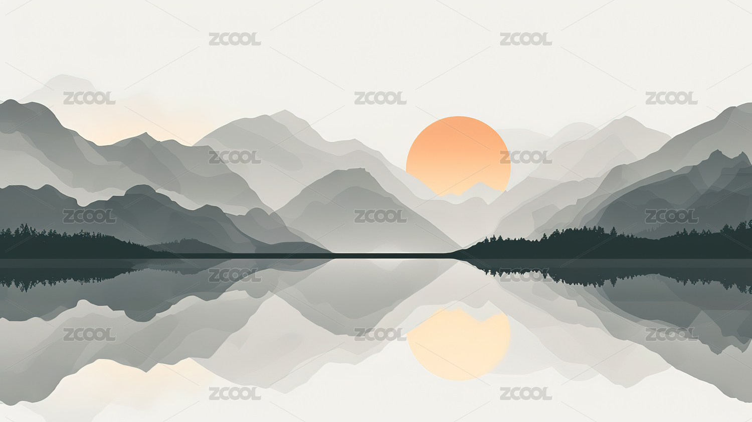宁静的水墨山水画面