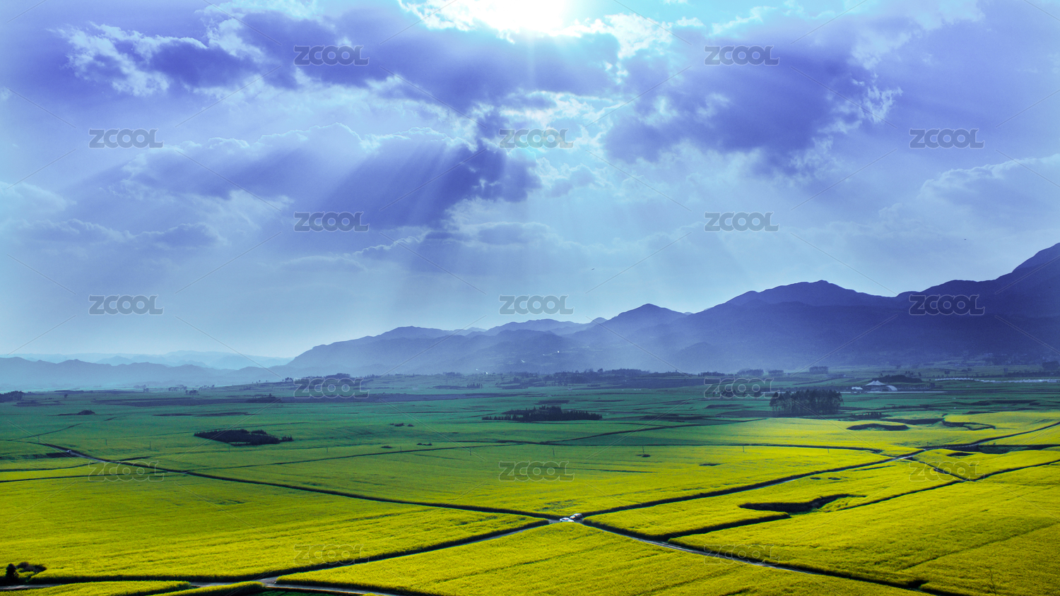 雨后阳光照耀的山峦