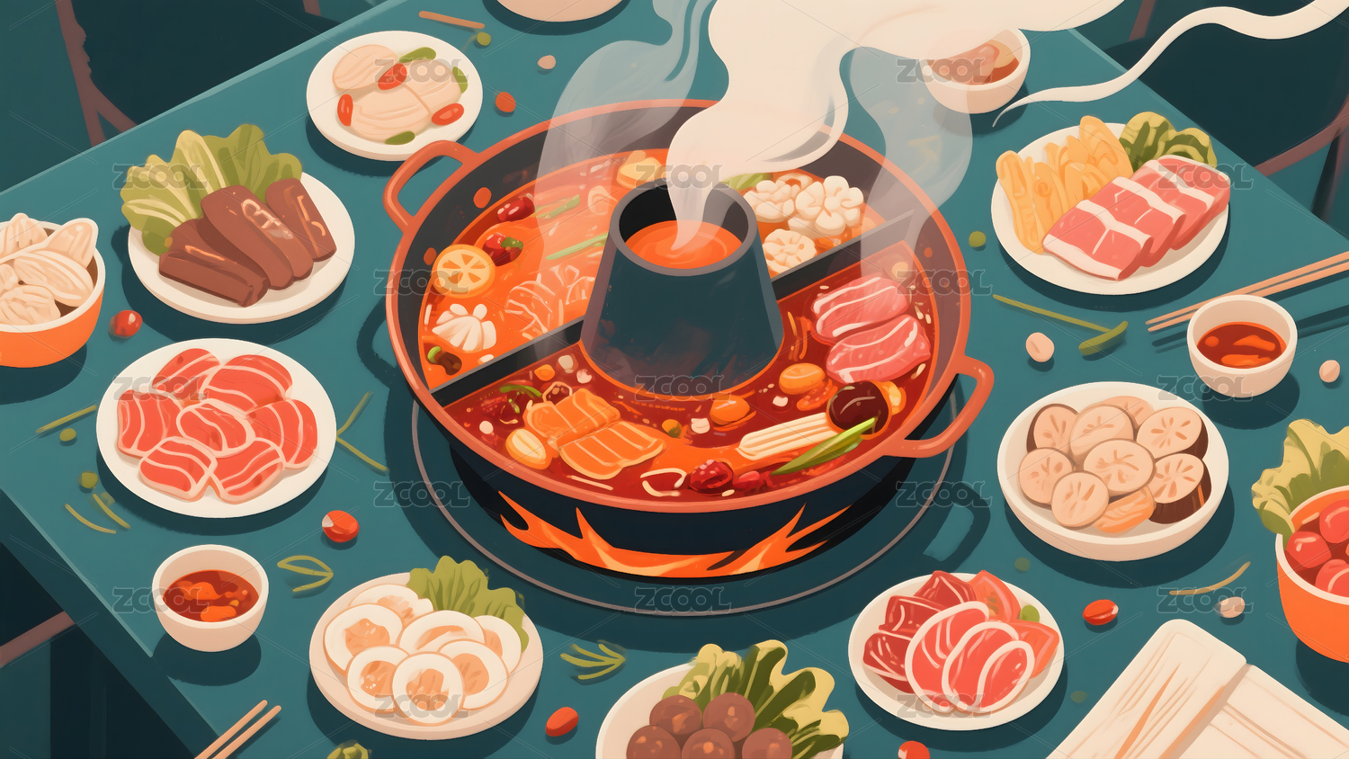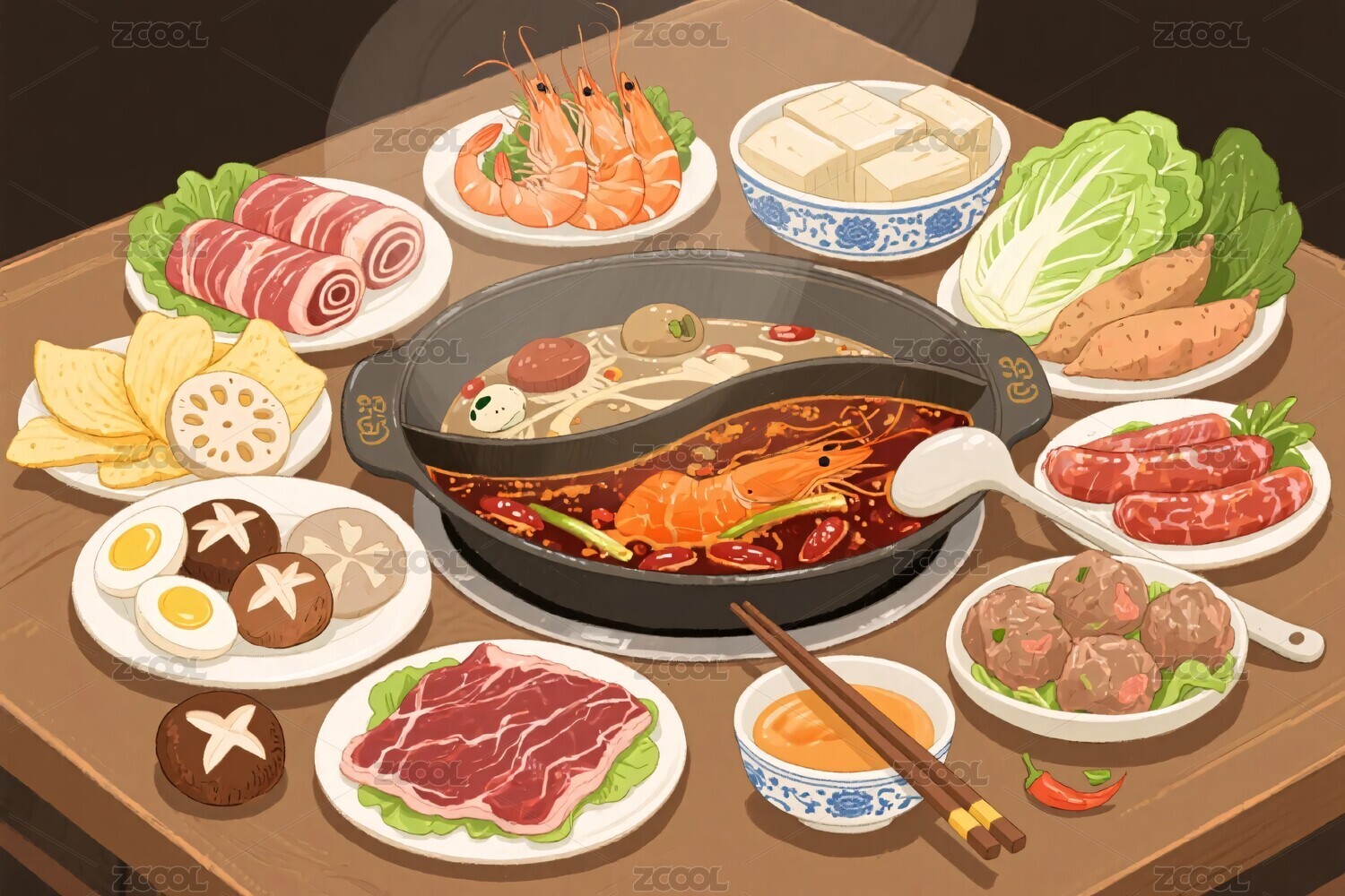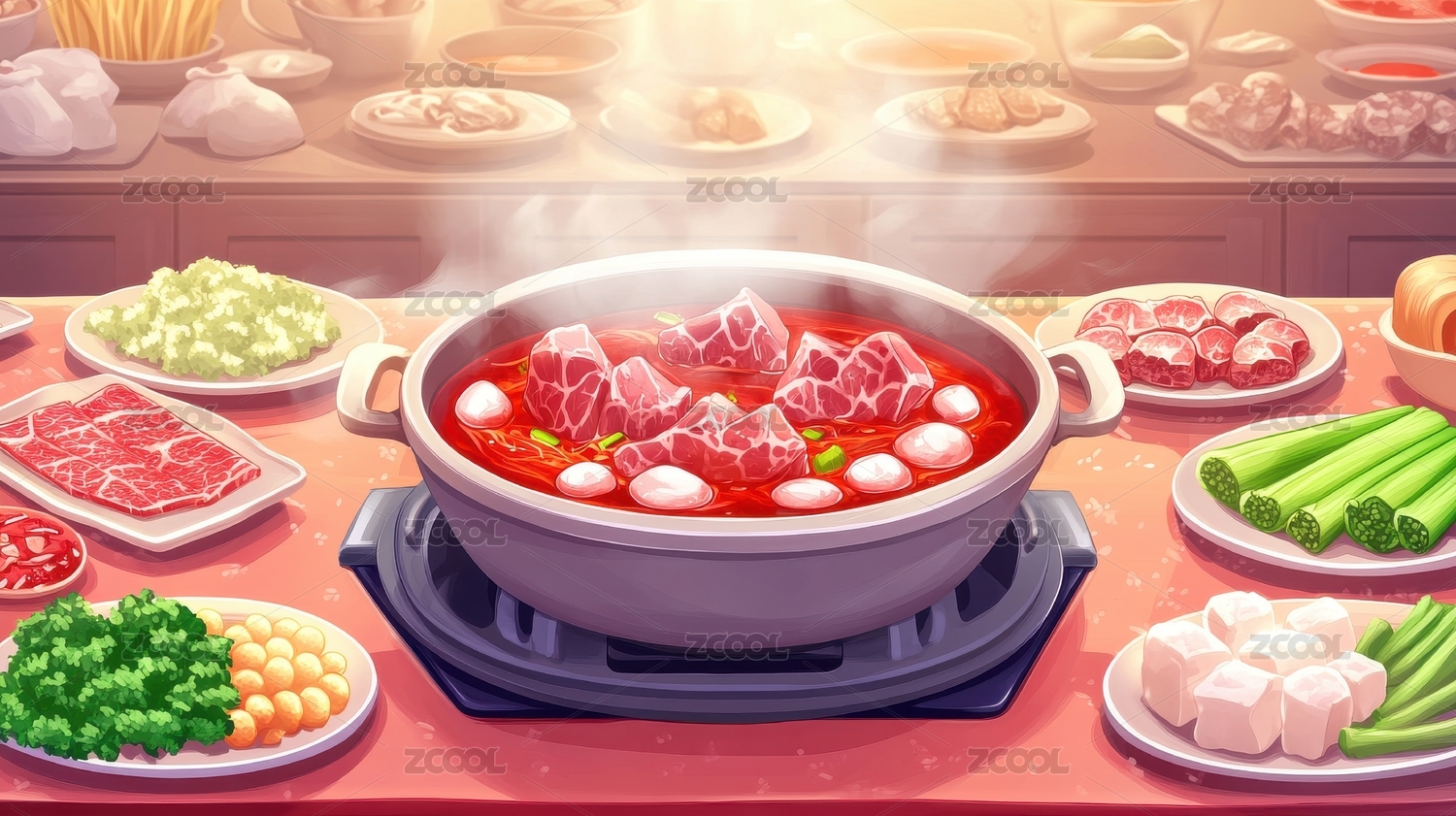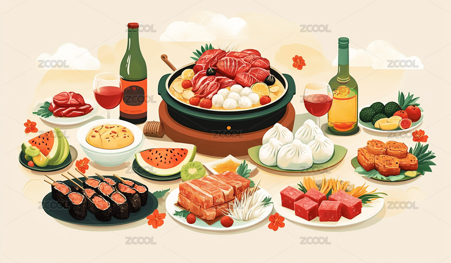 节日,火锅,食材,聚会,红酒,菜肴,派对,丸子,牛肉,盘子