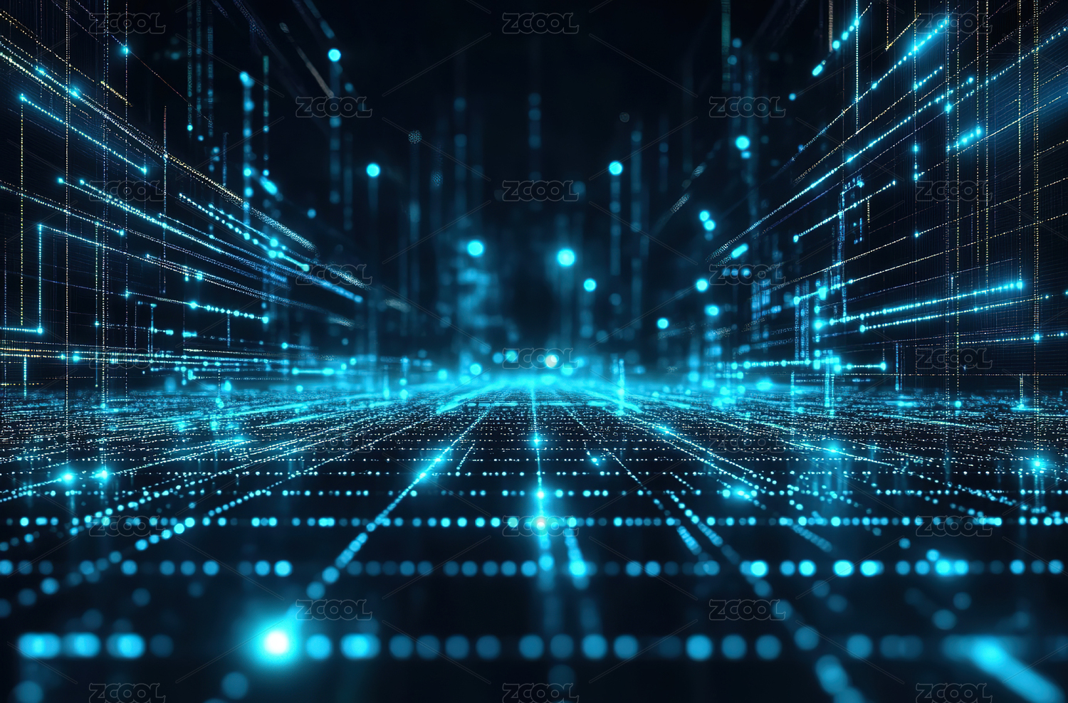 未来科技数字网格线路背景图,发光科技感场
