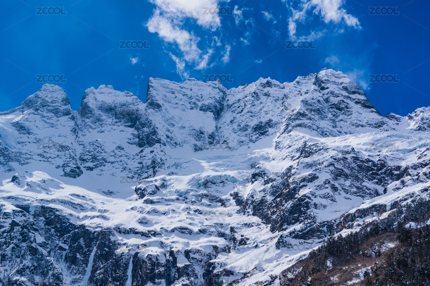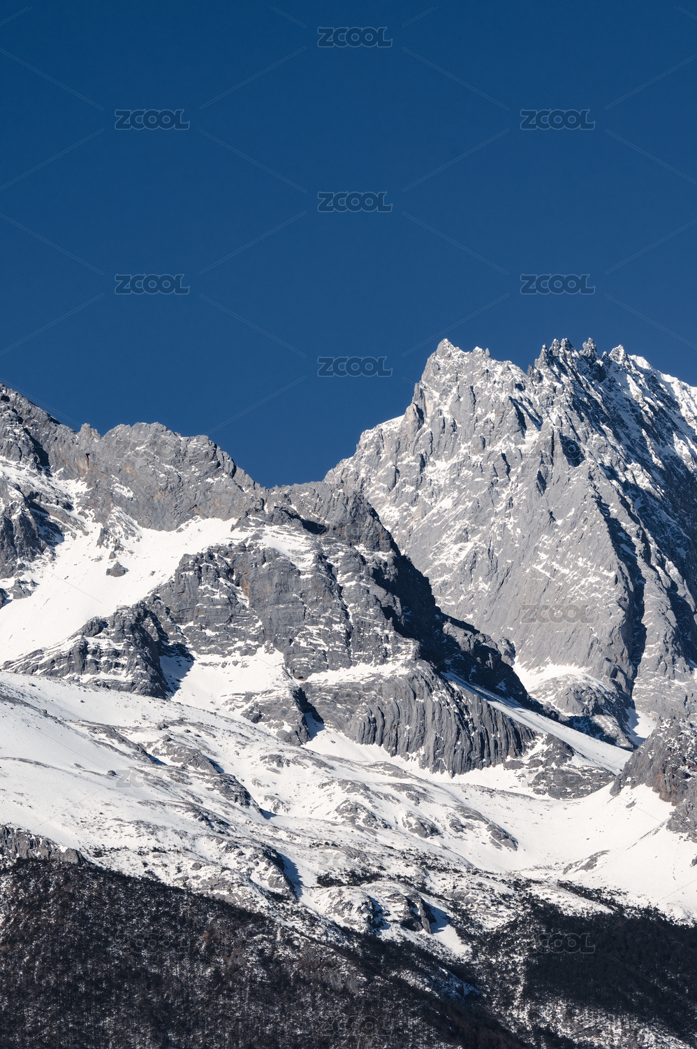 纯净蓝天下云南丽江玉龙雪山局部特写