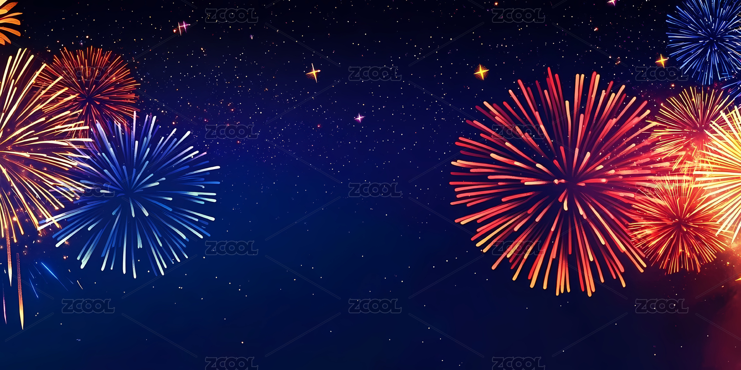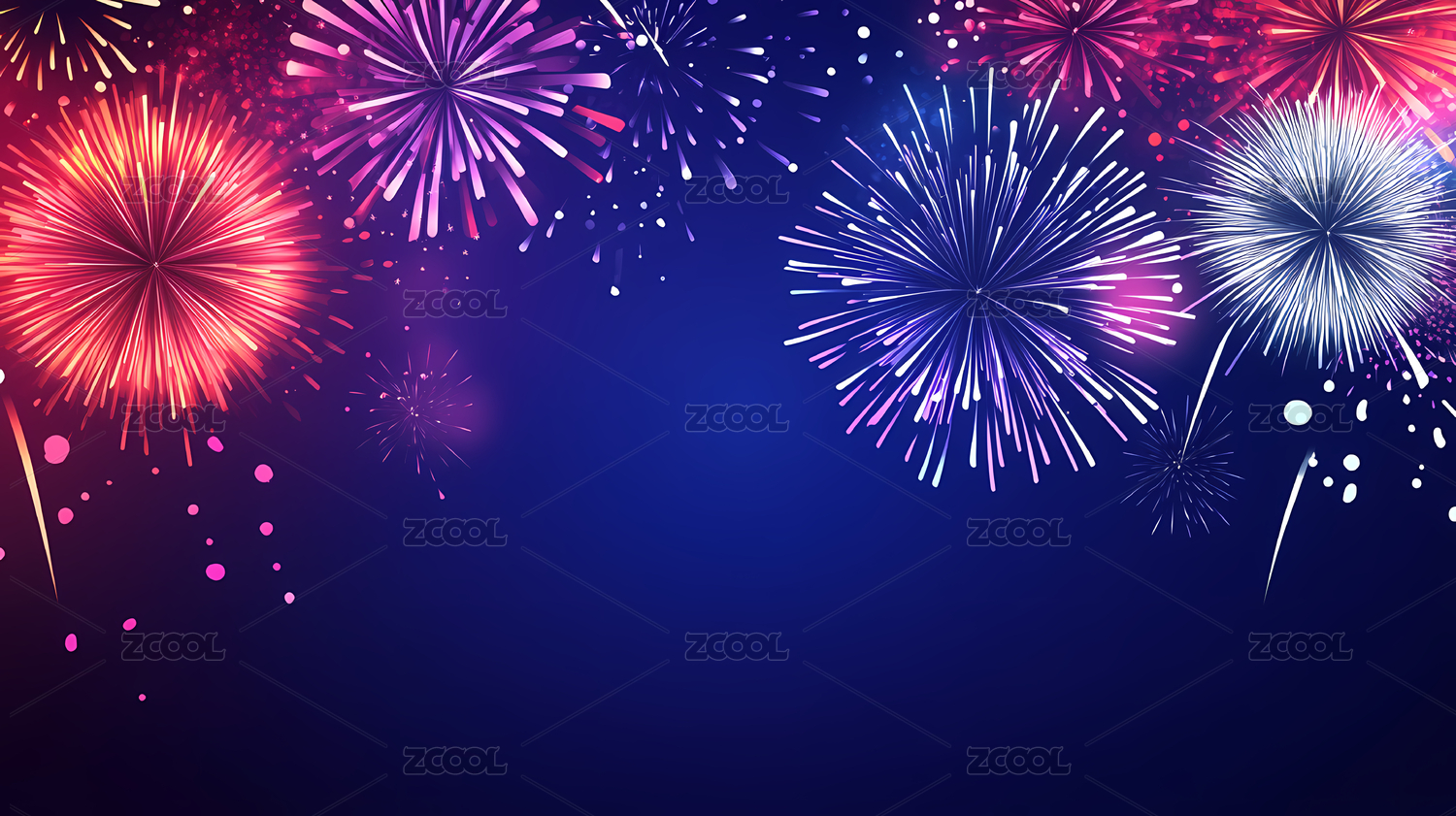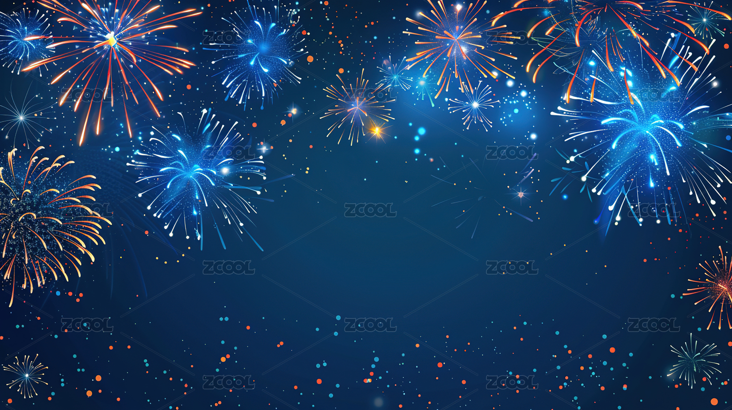 蓝色背景下蓝色夜空绽放的彩色烟花背景插画