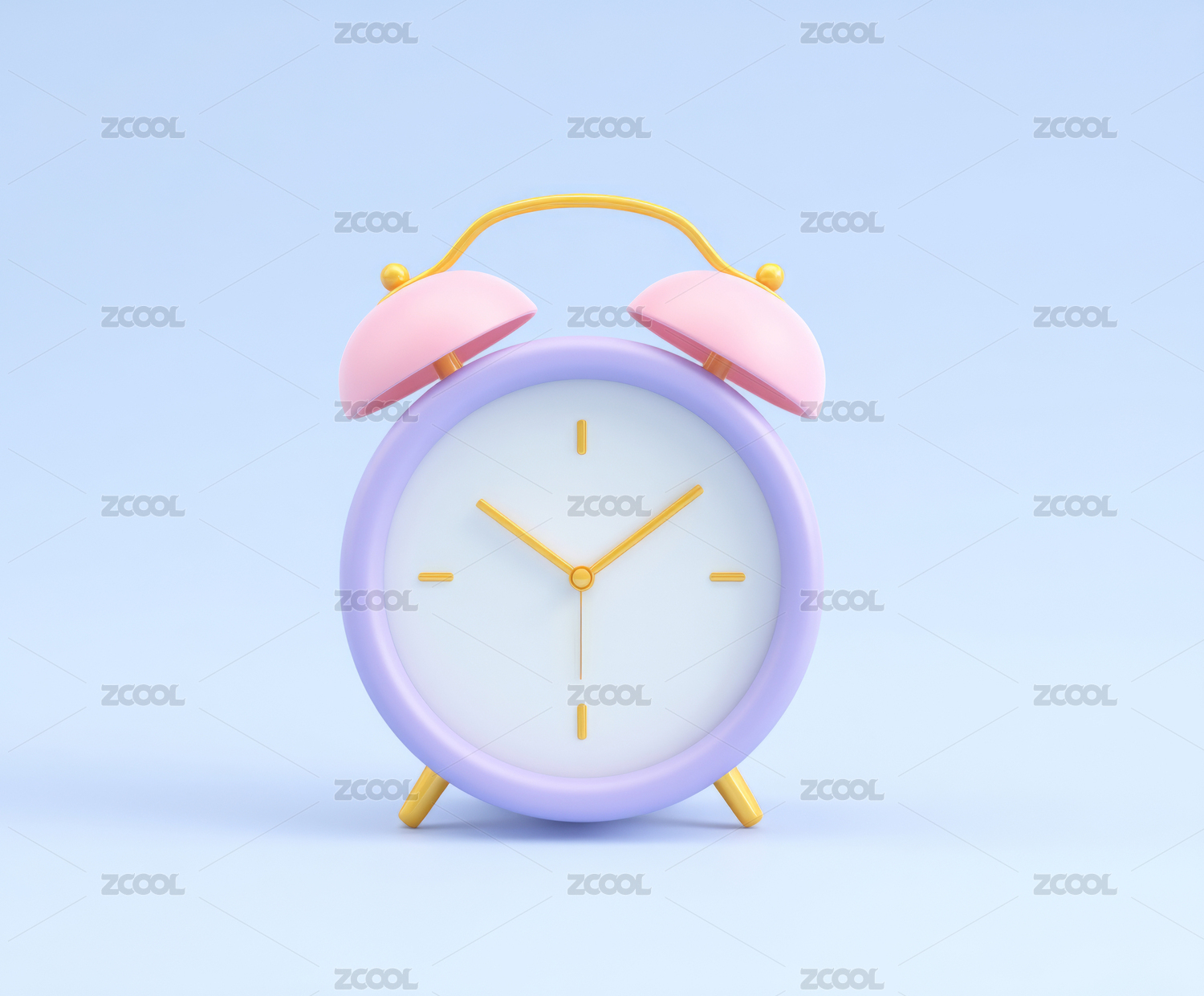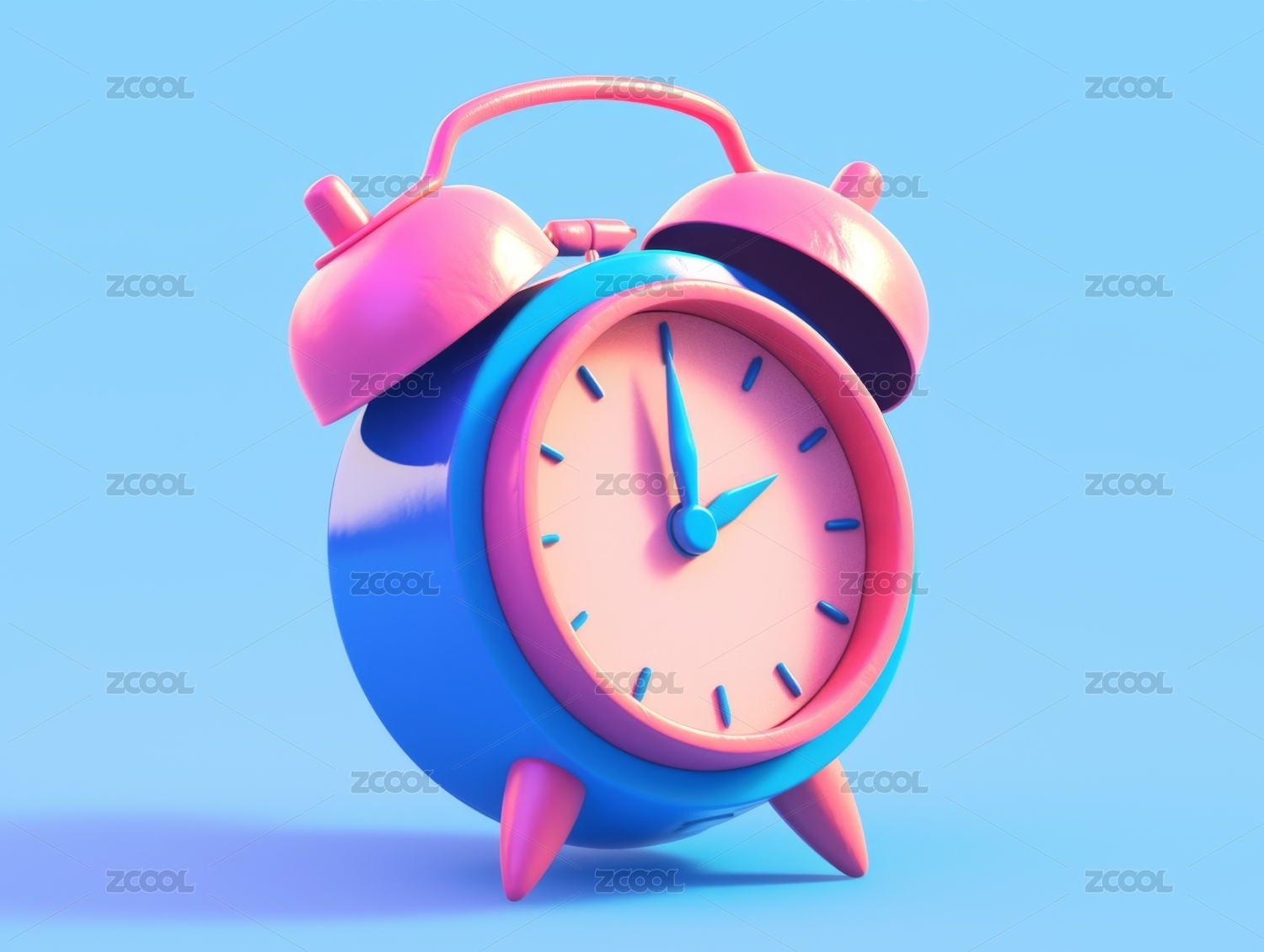 经典闹钟与蓝粉双色背景 3D渲染
