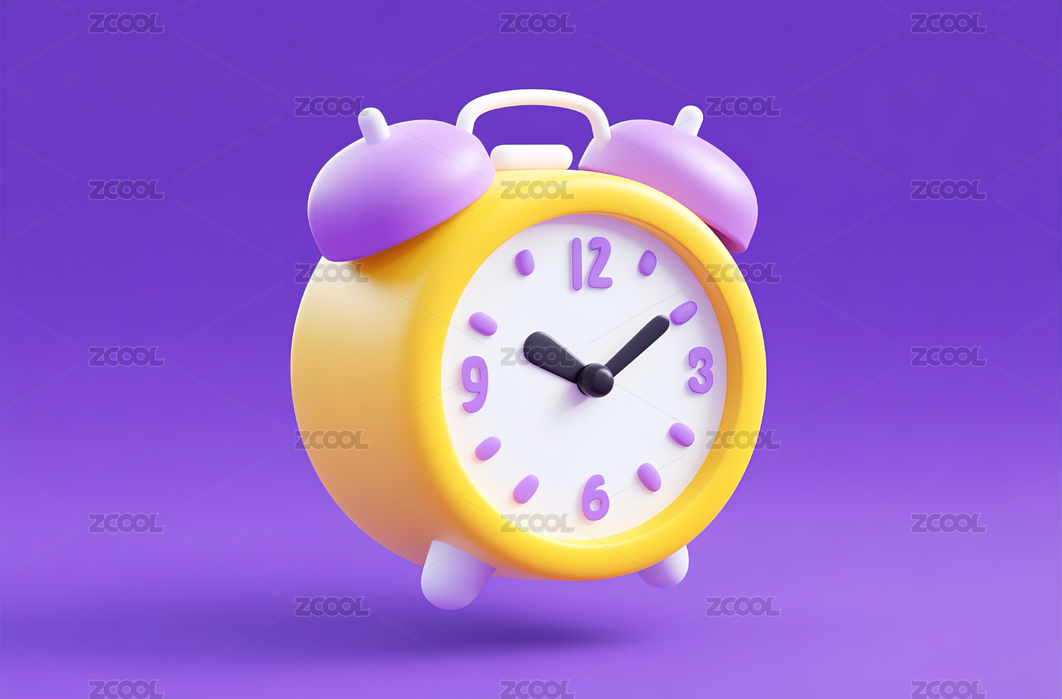闹钟,时钟,黄色,图标,icon,紫色背景,电商,活动,促销,时间