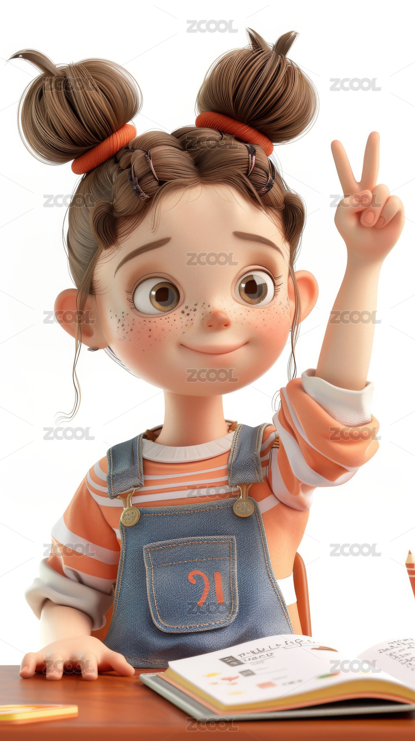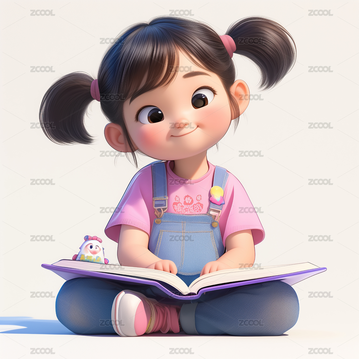 扎双马尾穿背带裤的卡通女孩