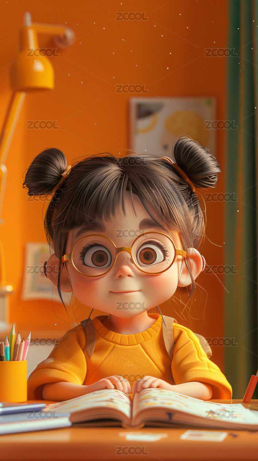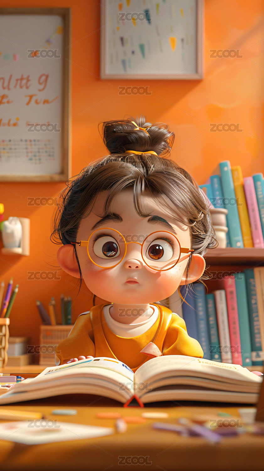 3D卡通可爱女学生插画