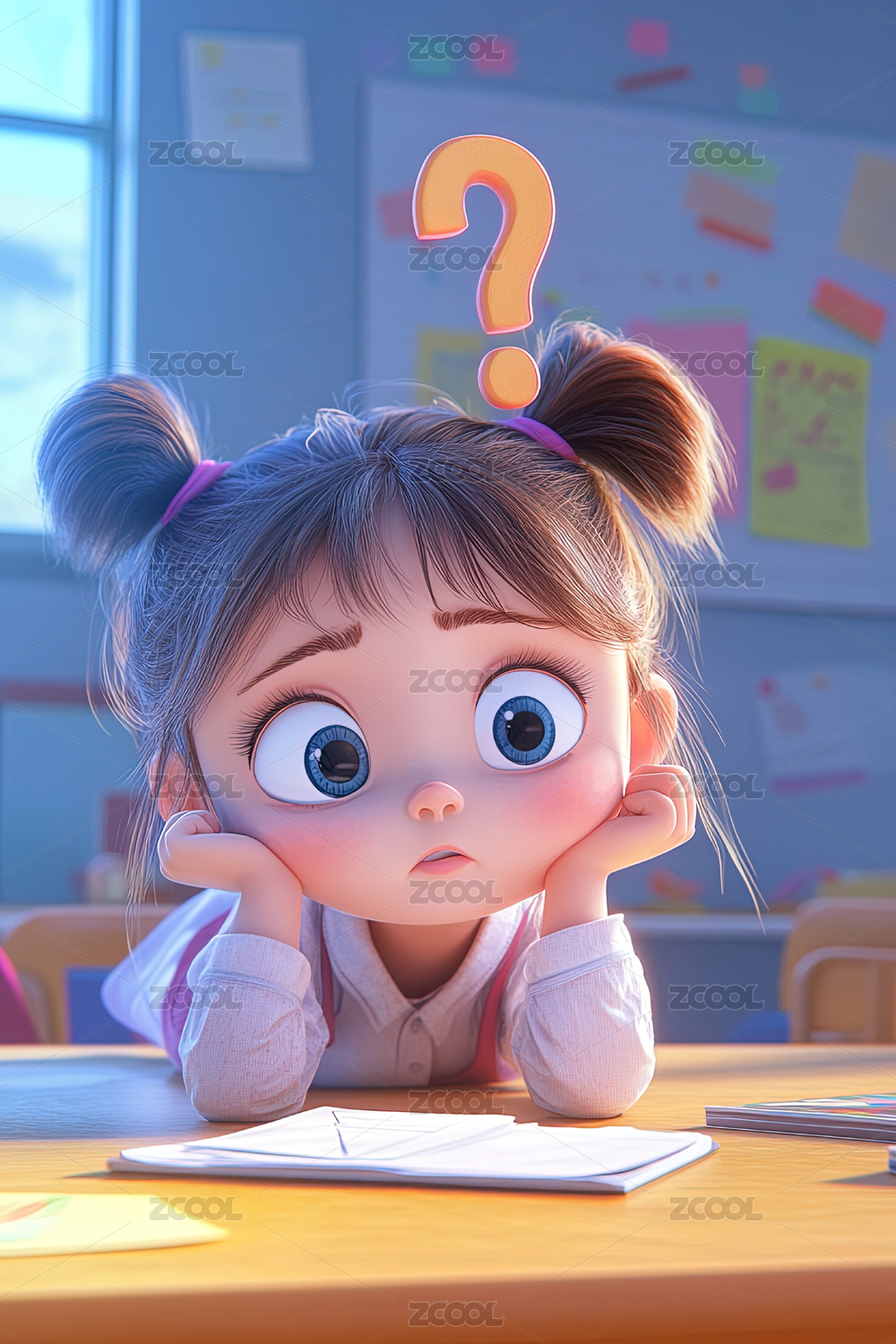 卡通女孩举手提问