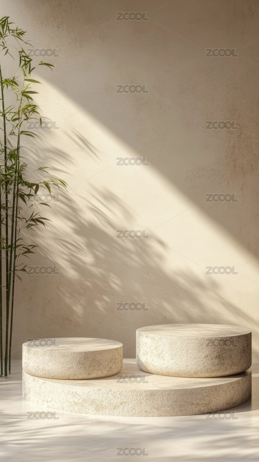 米色背景中式竹子展台