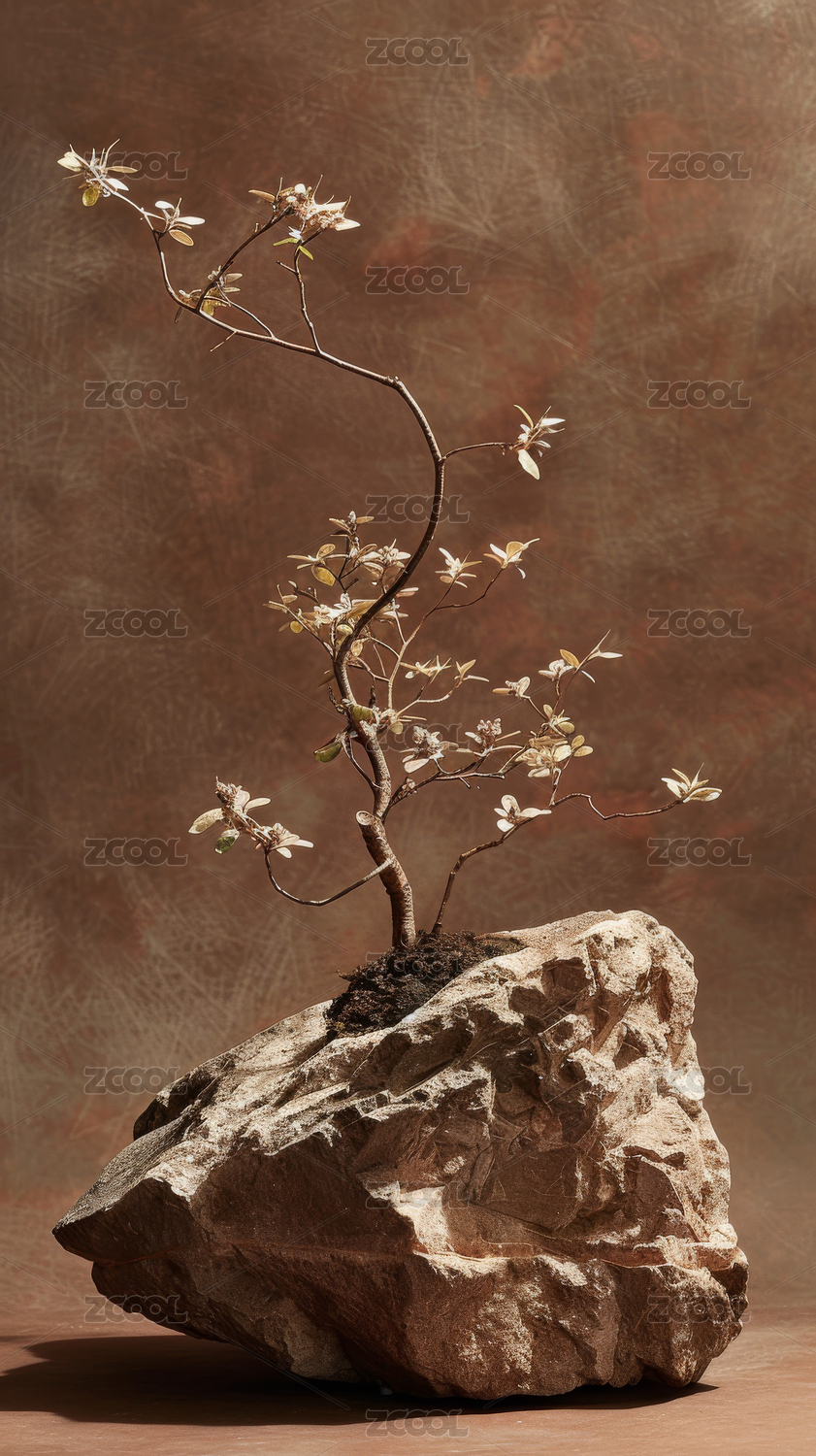 松树盆景与石影