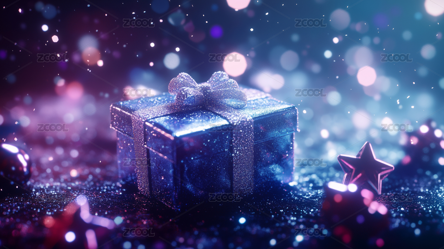 粉色礼品盒配梦幻光斑背景