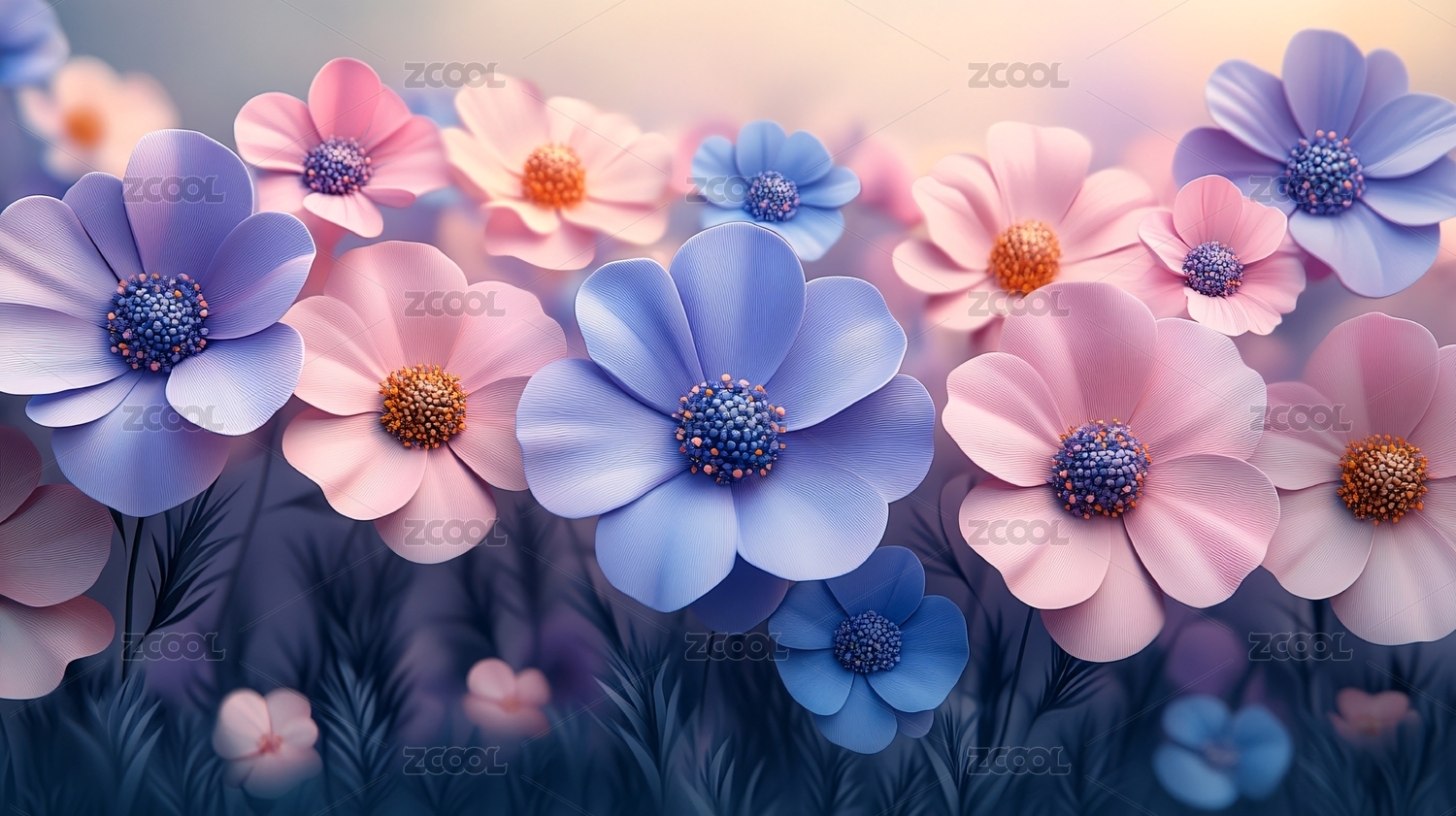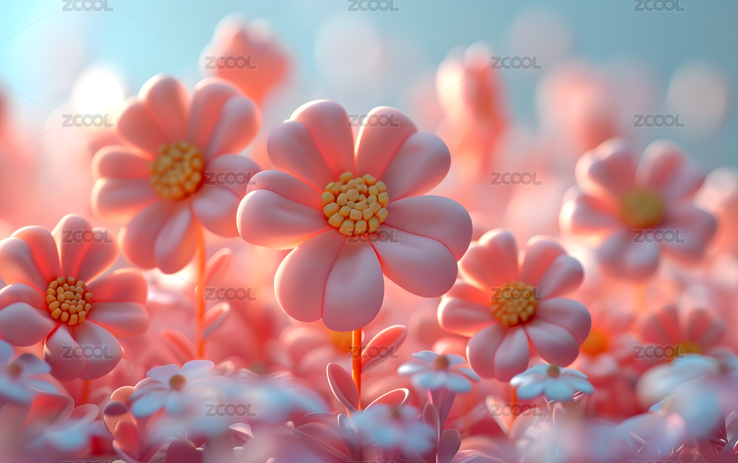 3D,卡通,三维,立体,背景,插图,渲染,花草,花,花朵