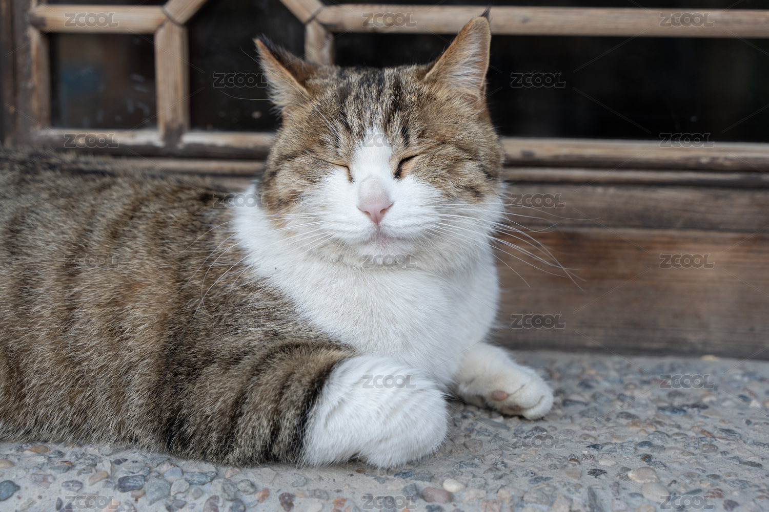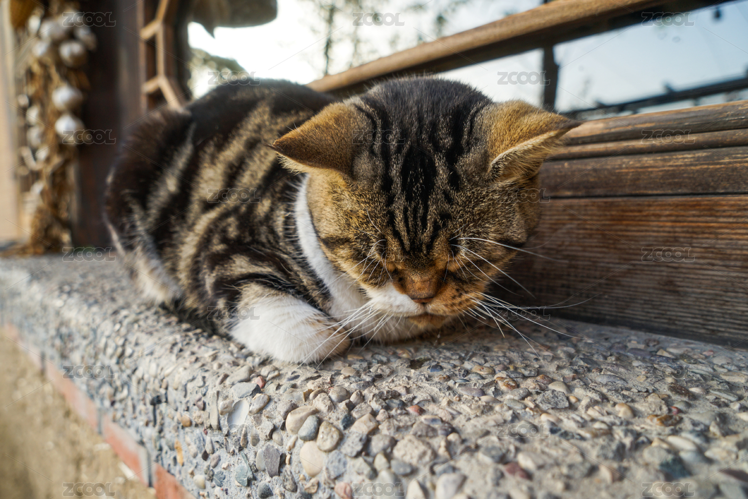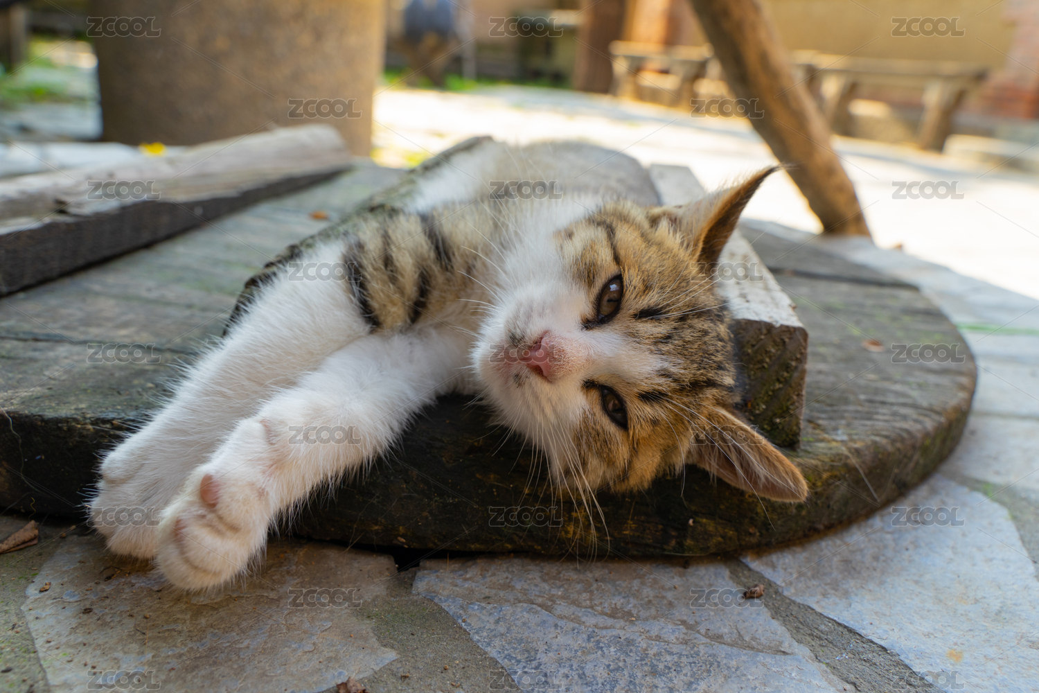 猫在,木制,井盖,休息,睡觉,宠物,腮须,自然,动物,可爱
