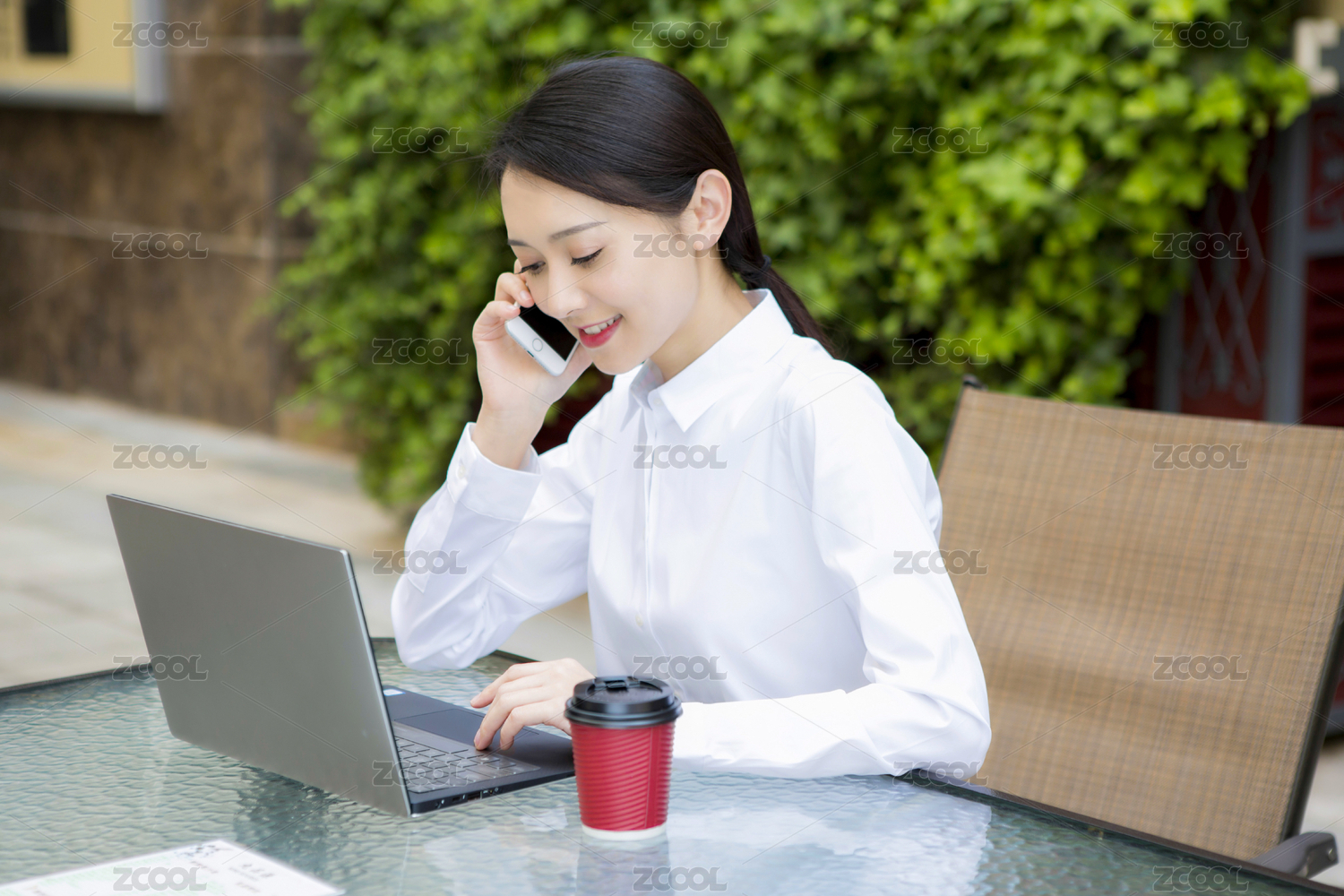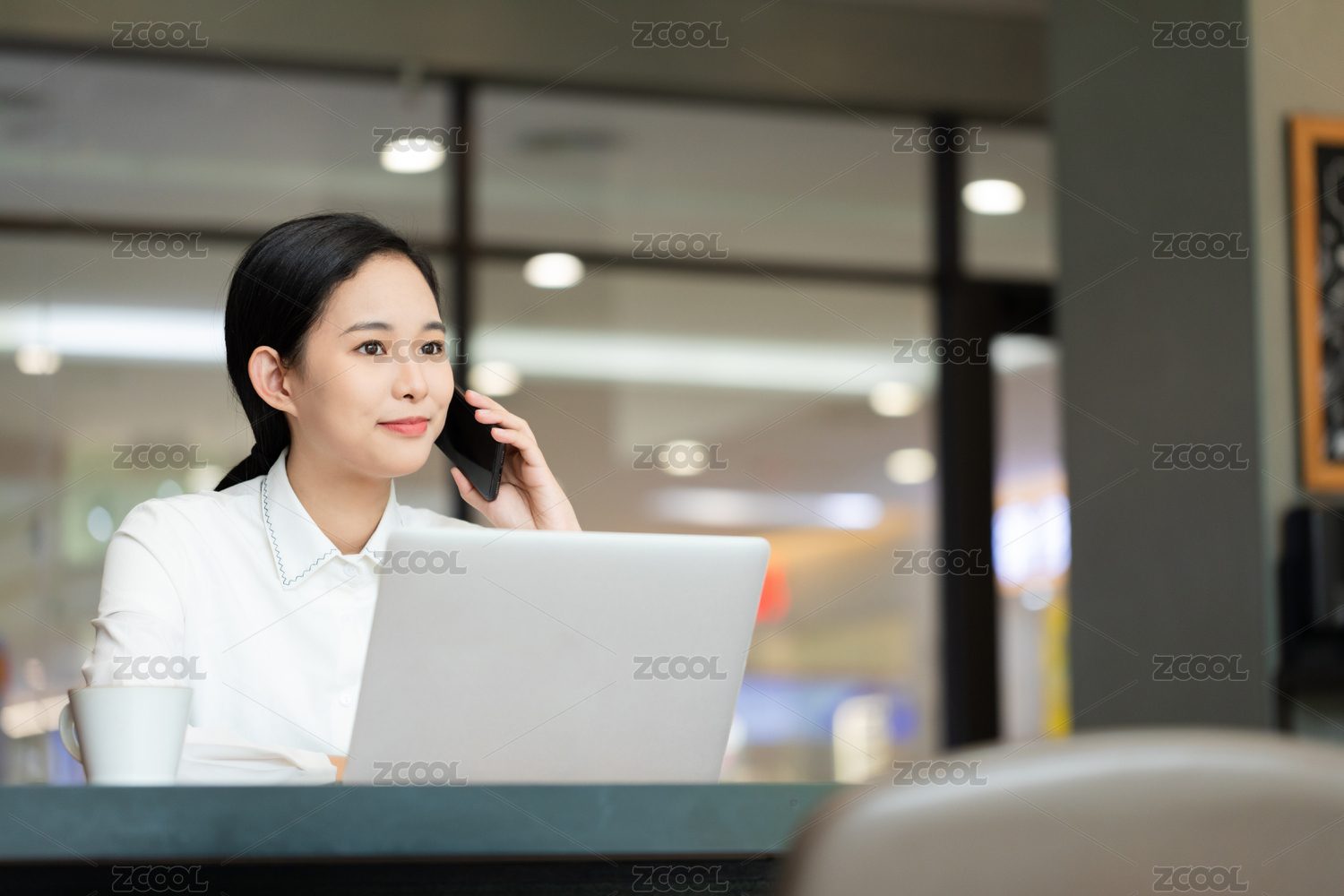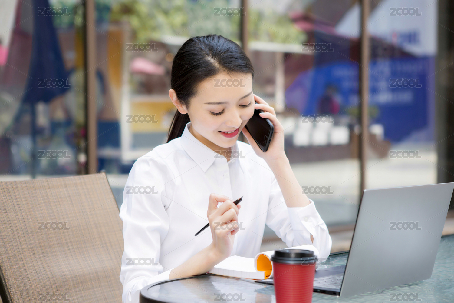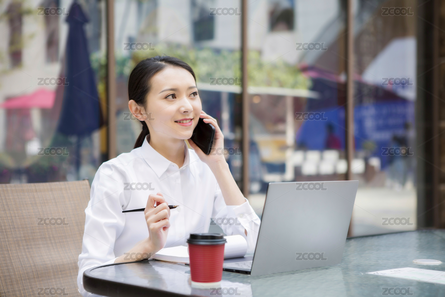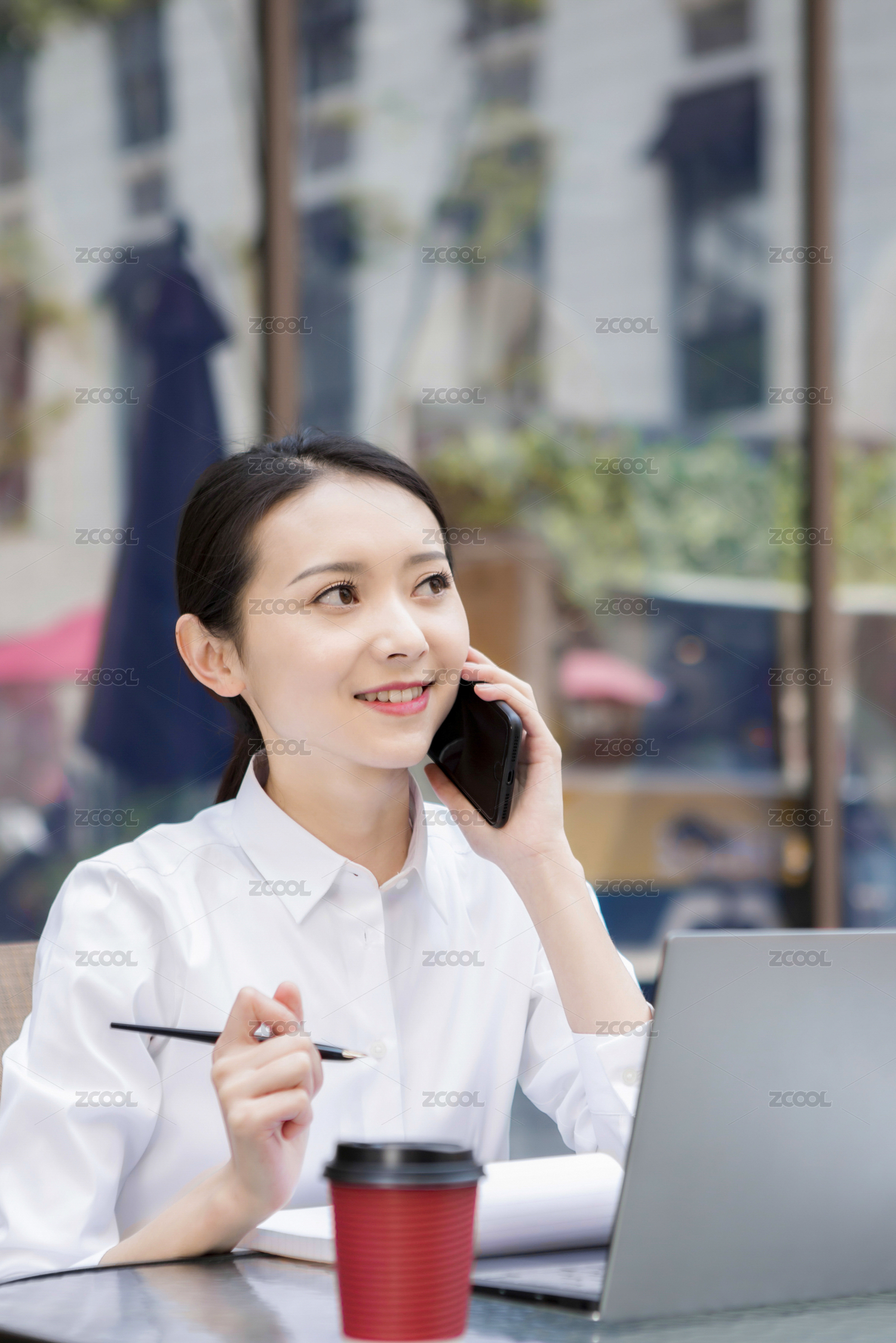 职场女性咖啡馆办公打电话