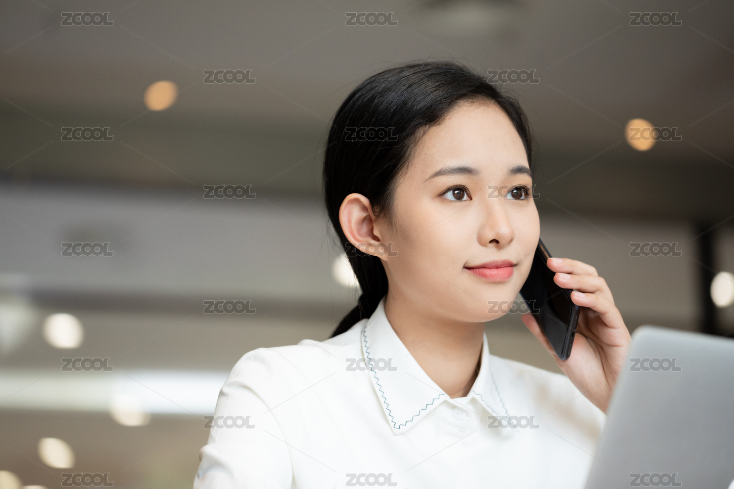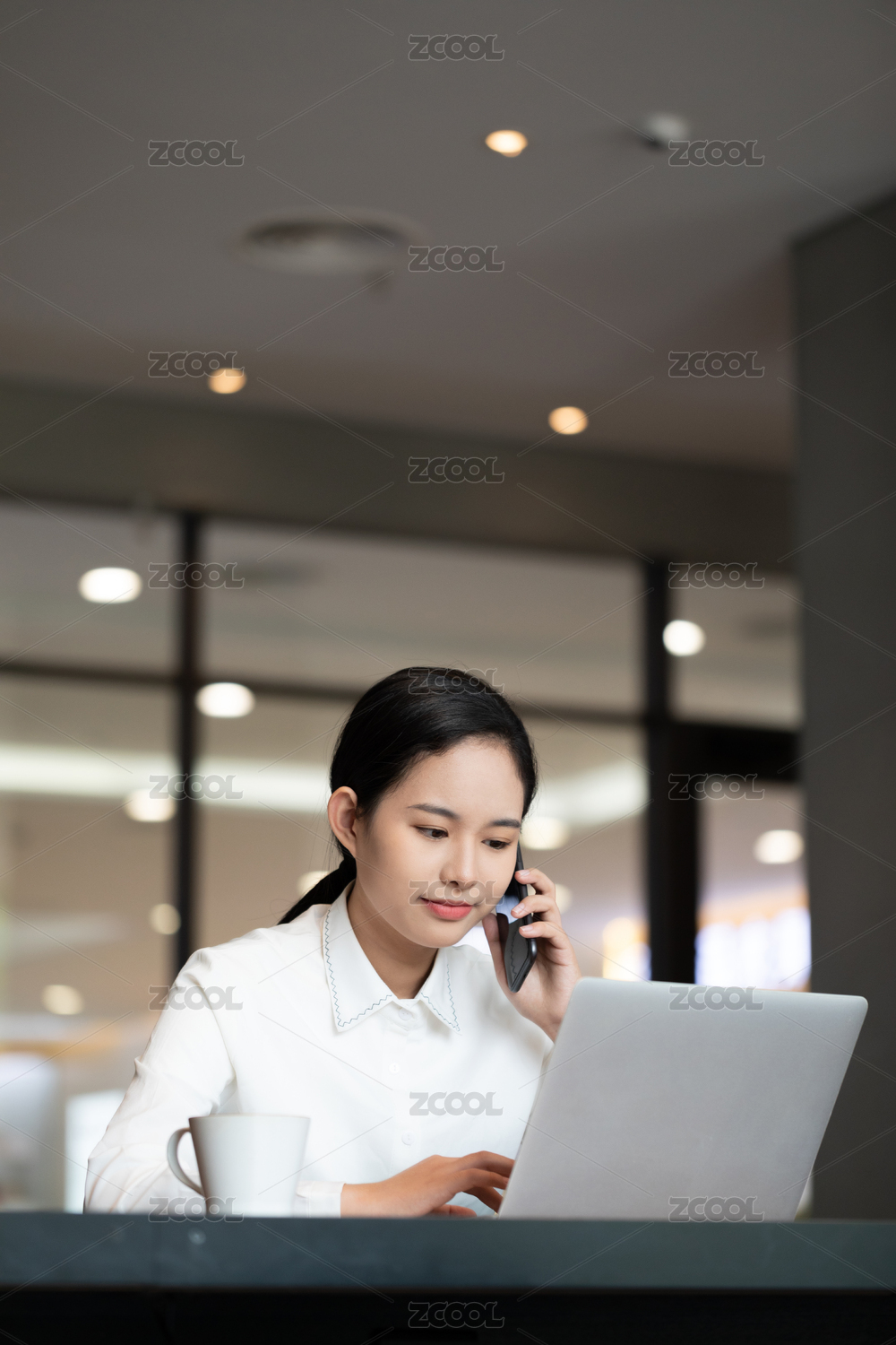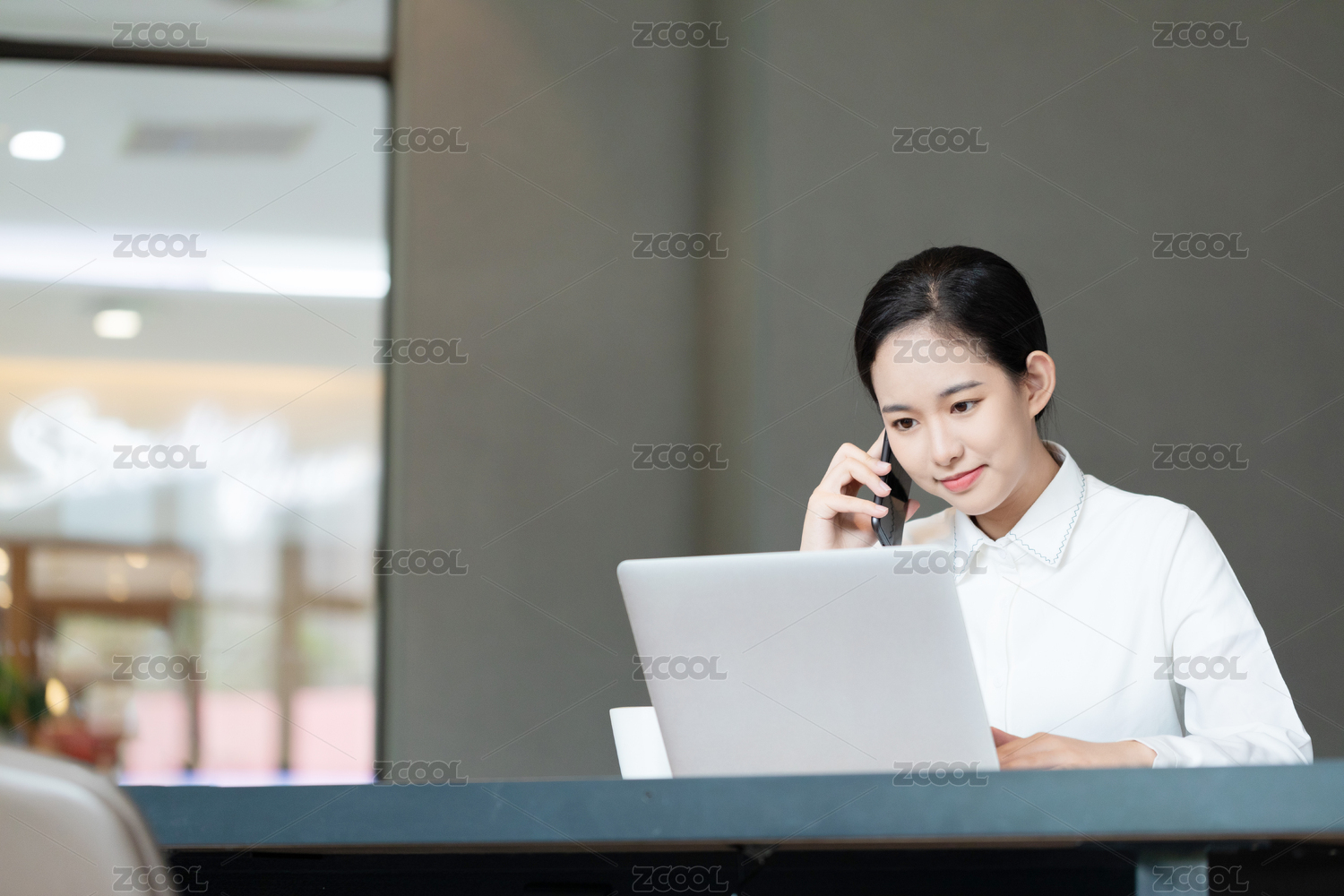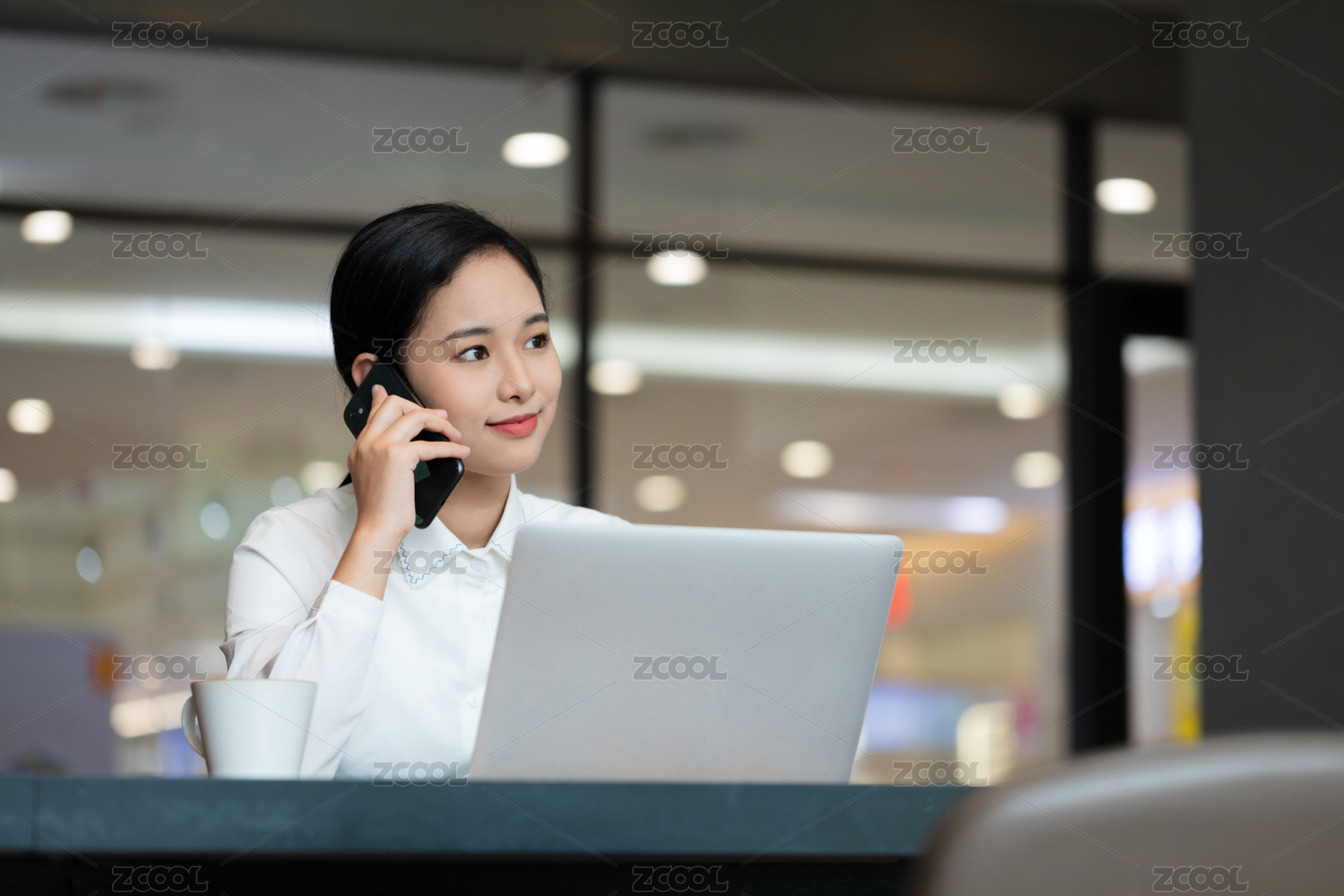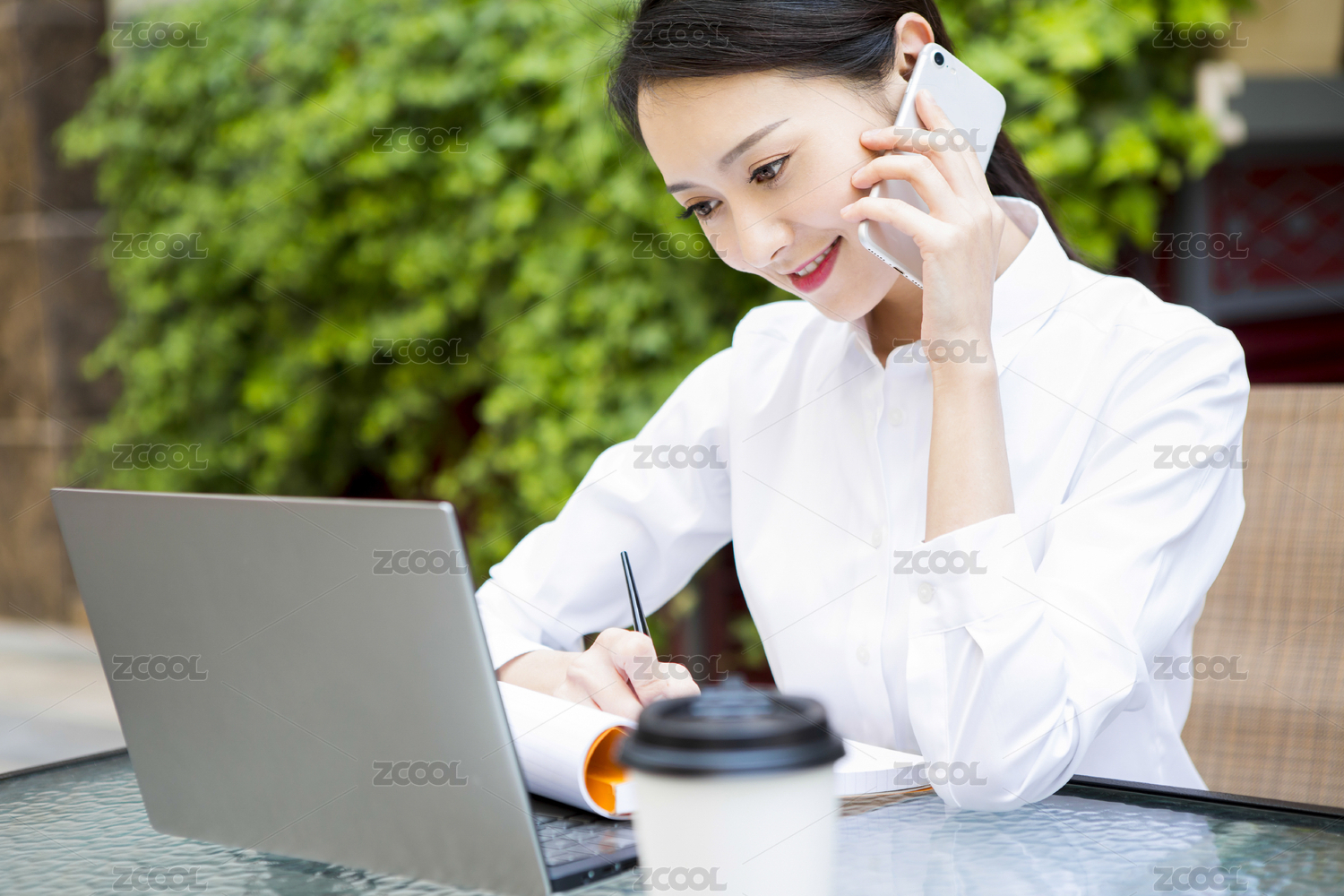 职场女性咖啡馆办公打电话