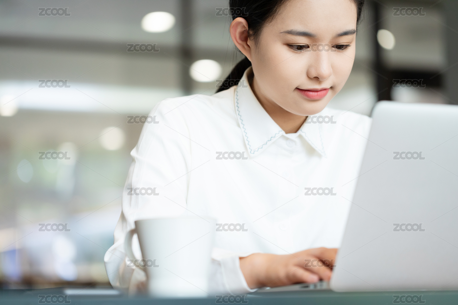 职场女性专注看电脑工作