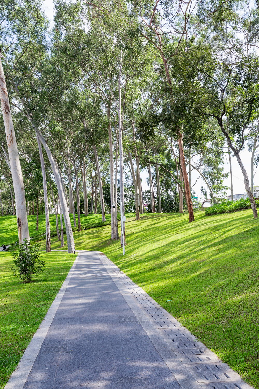中国,广东省,广州市,越秀区,鹿湖公园,环形,U形,走廊,黄色,天空