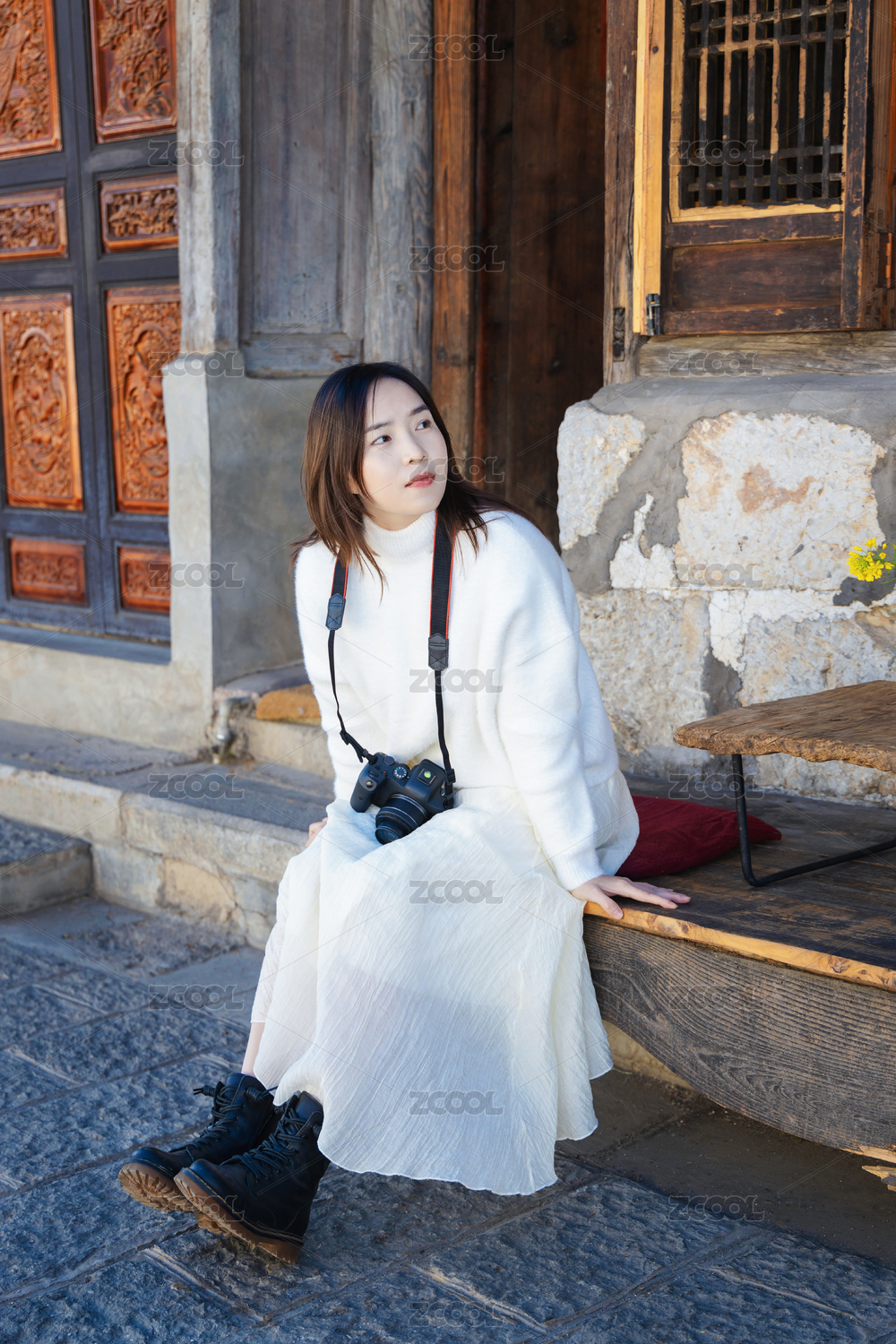 人,人像,一个人,女人,女生,女性,美女,相机,享乐,留白