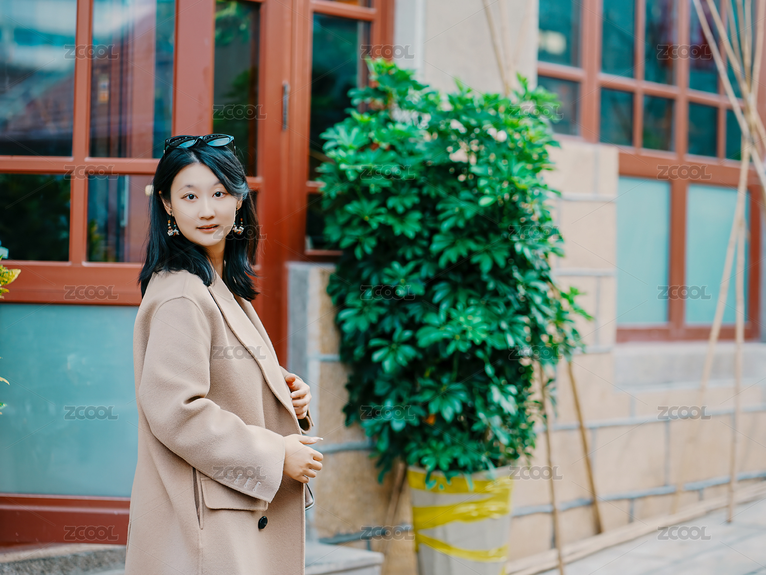 春天在北京798艺术区穿连衣裙的年轻女孩