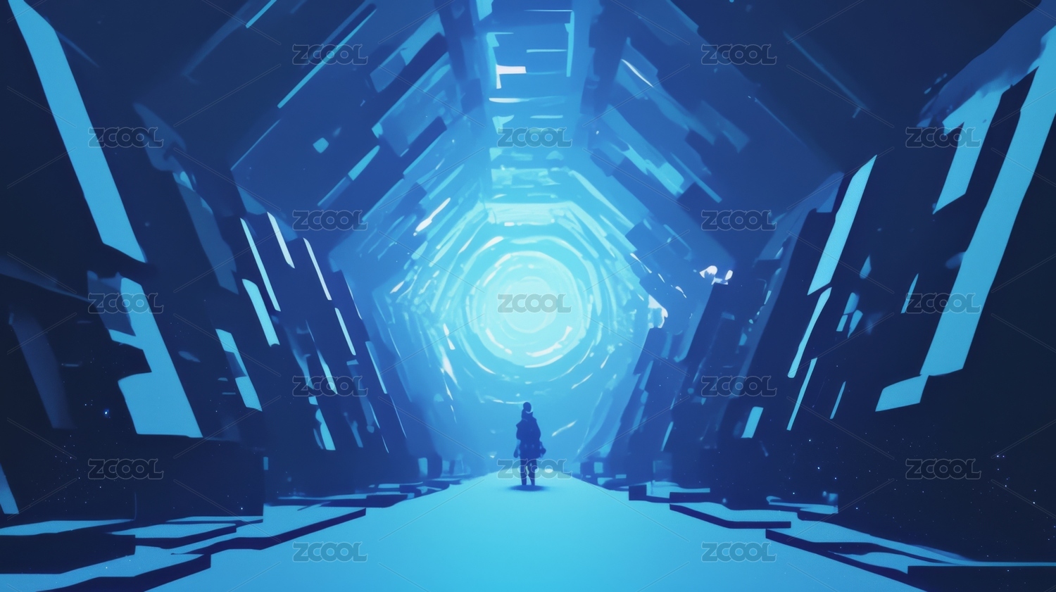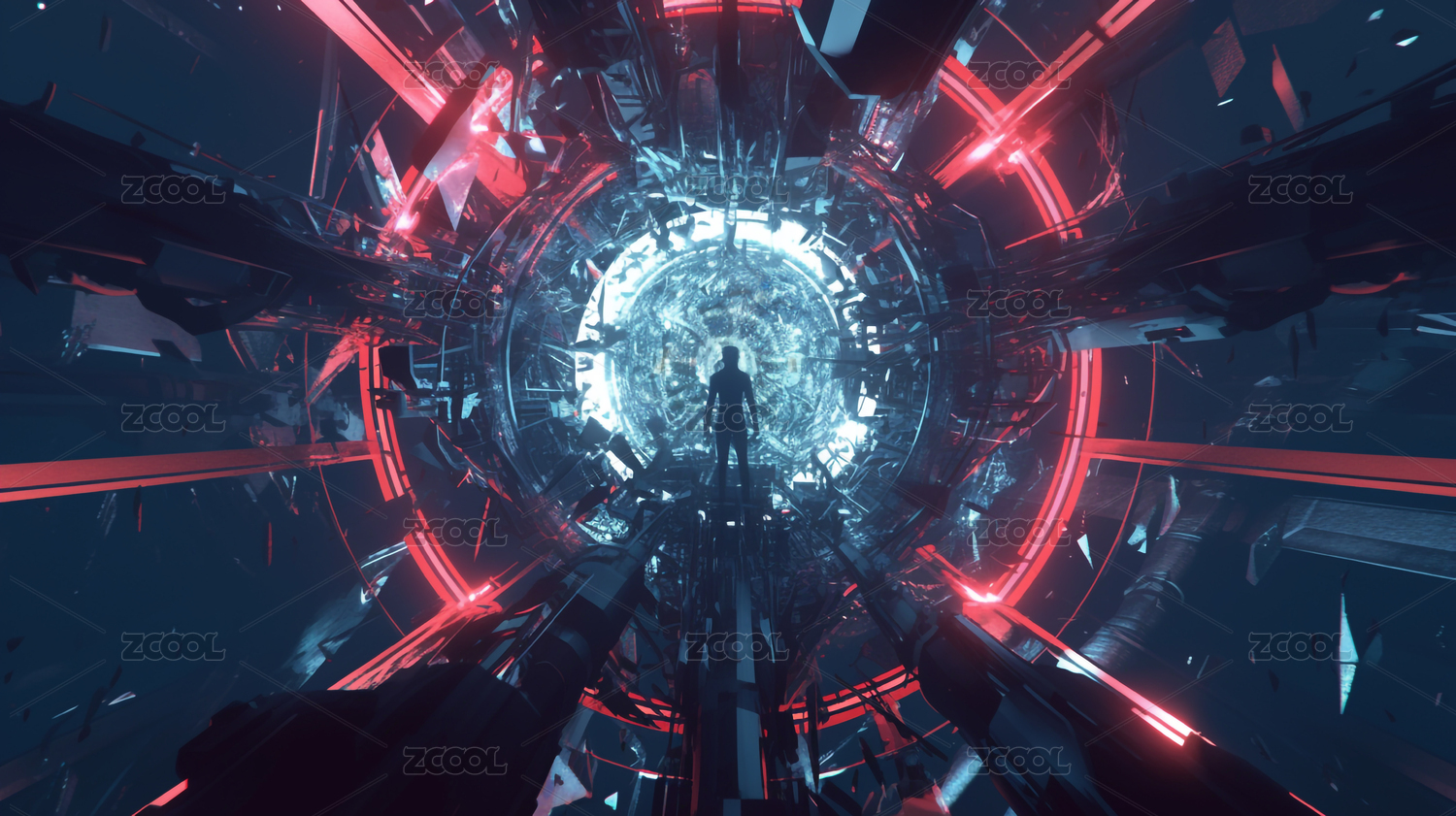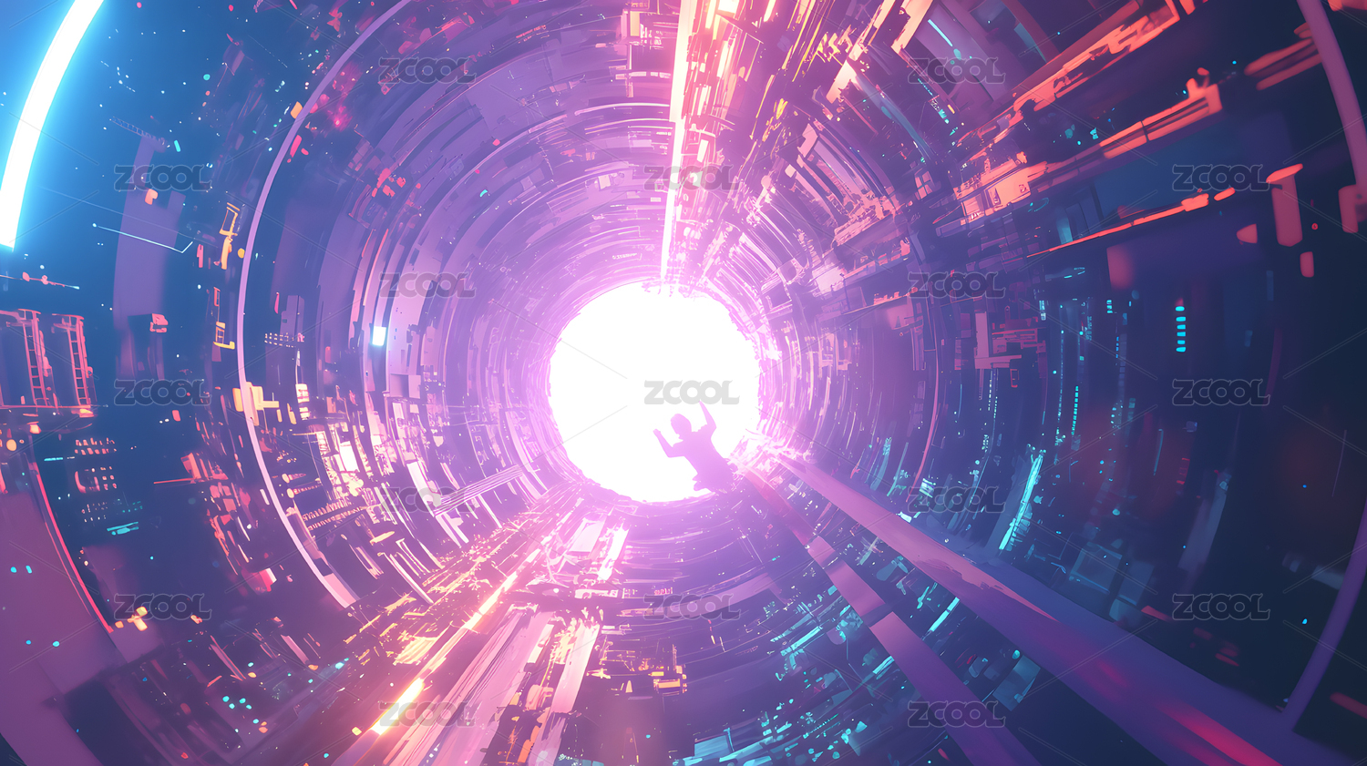 科幻未来太空中宇航员被黑洞吸引3D插画