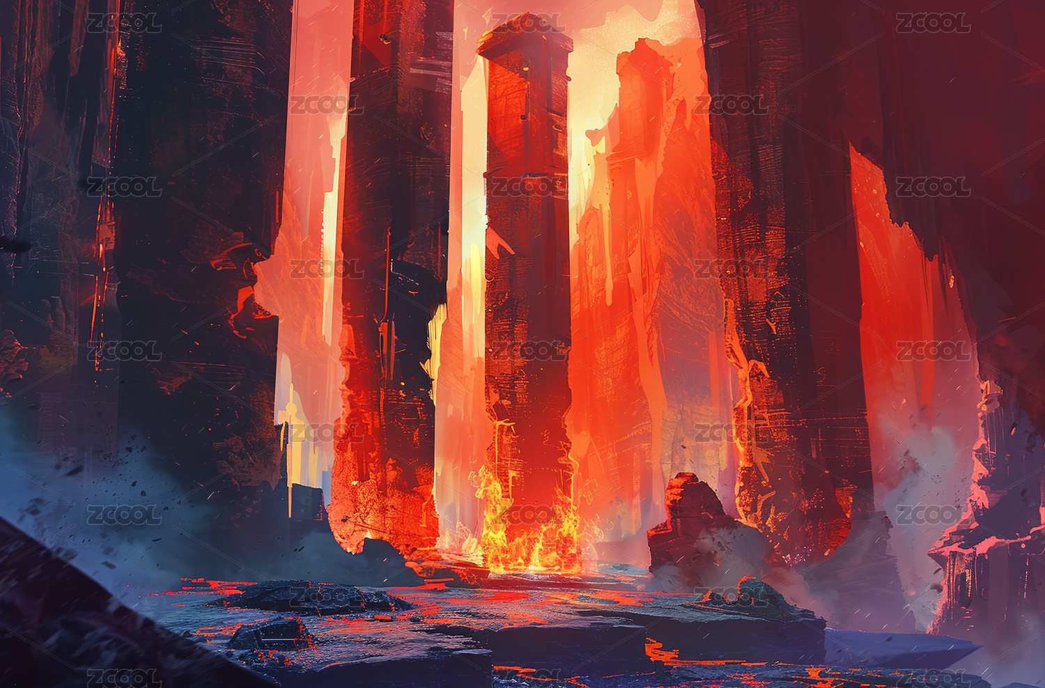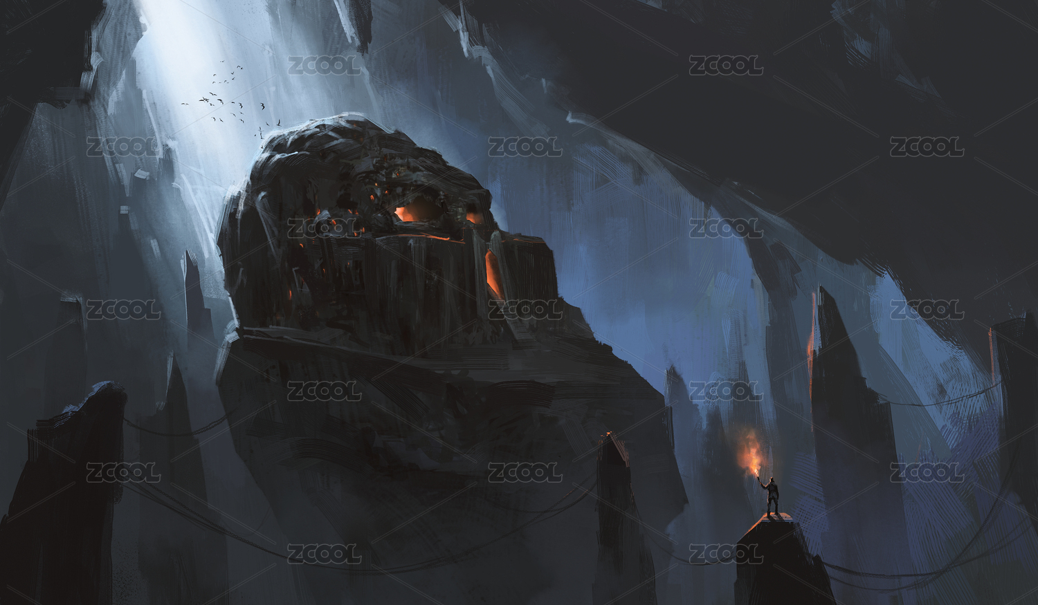奇幻洞穴探险插画梦幻抽象自然风景冒险插图