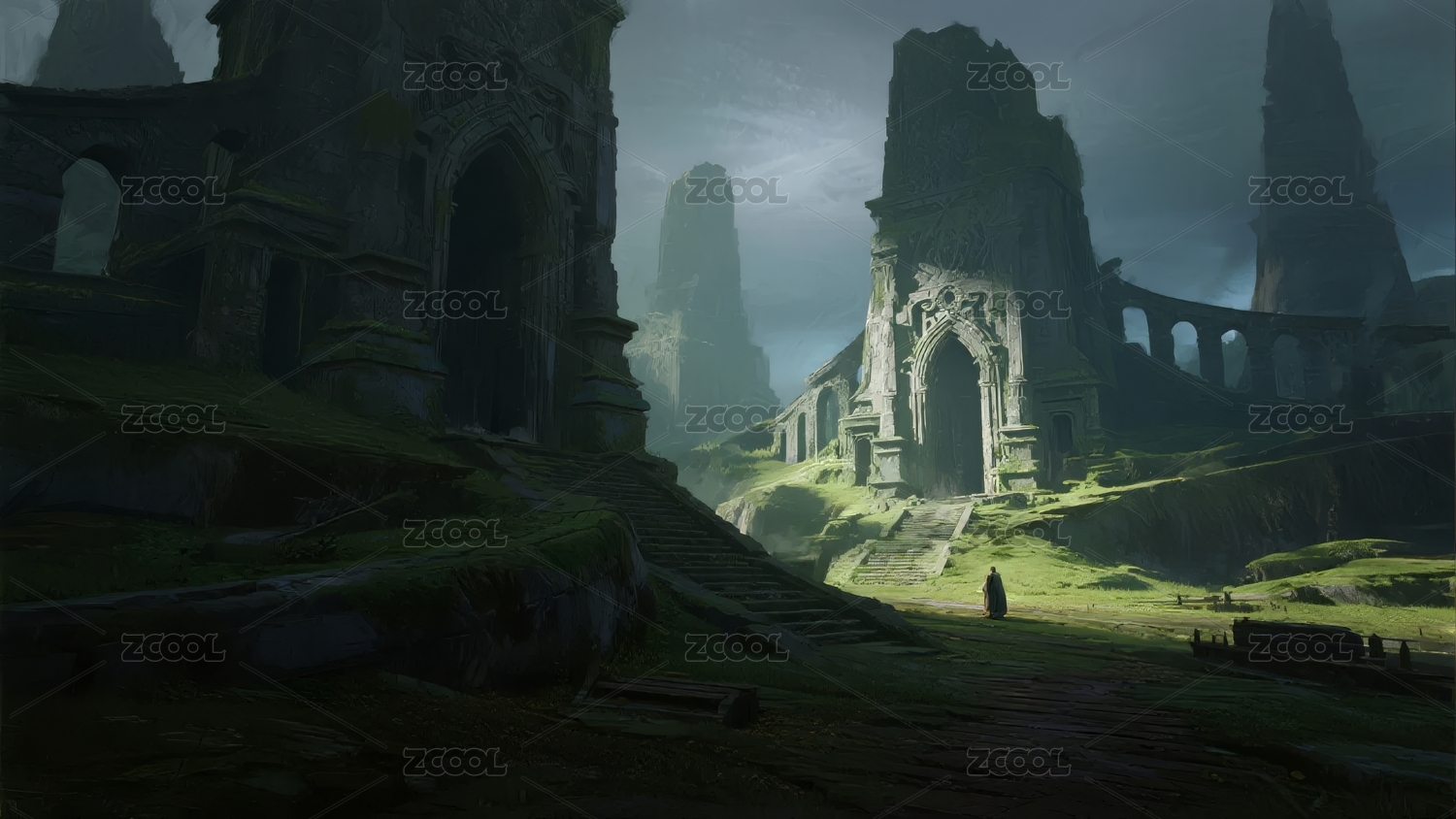 法师,魔法,光,朝圣,废墟,历史,破坏,天使,支柱,广场