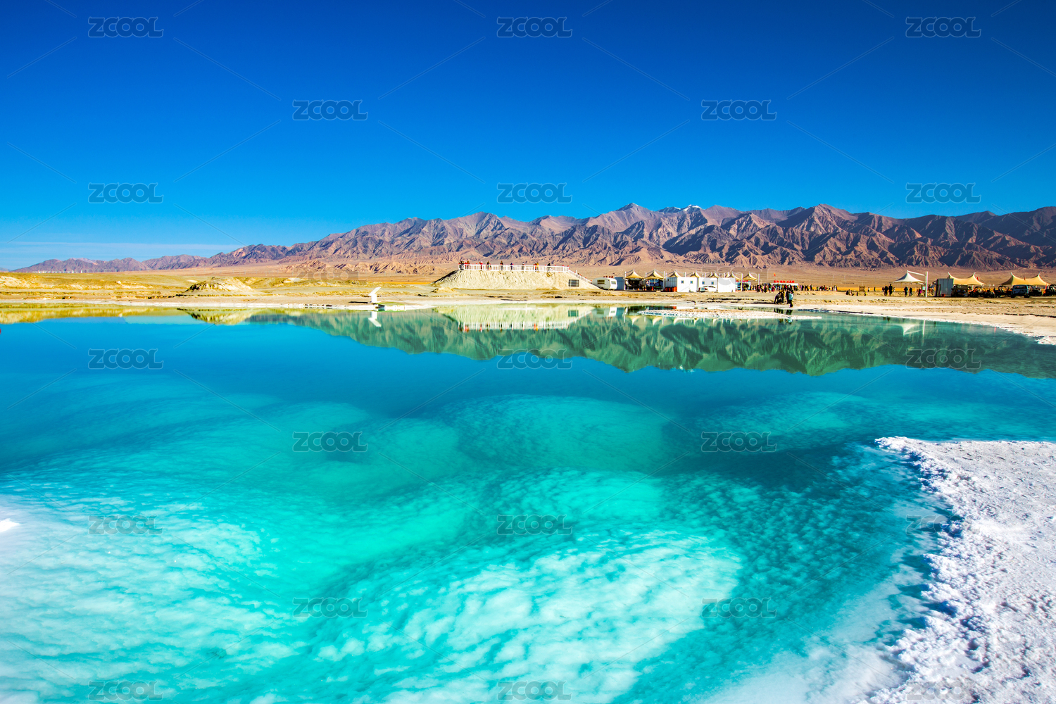 青海,盐湖,碧绿,清澈,湖,湖泊,天际线,雪白,盐,宁静