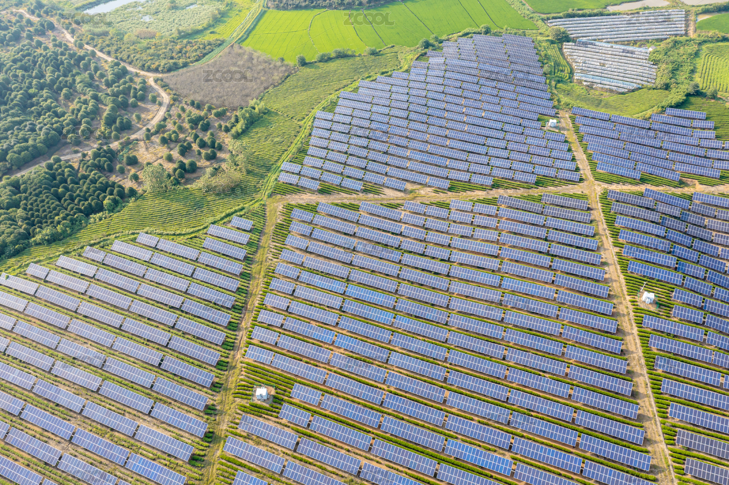 航拍茶园光伏发电