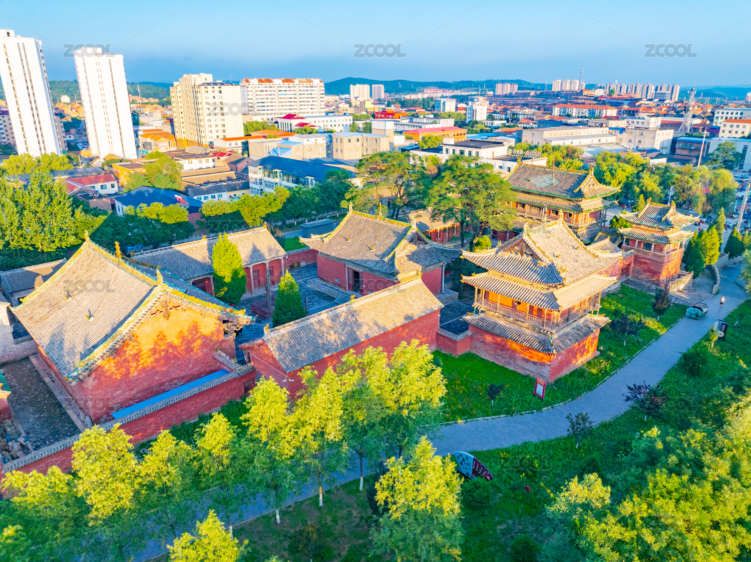 中国山东泰安市泰山区东岳庙岱庙航拍