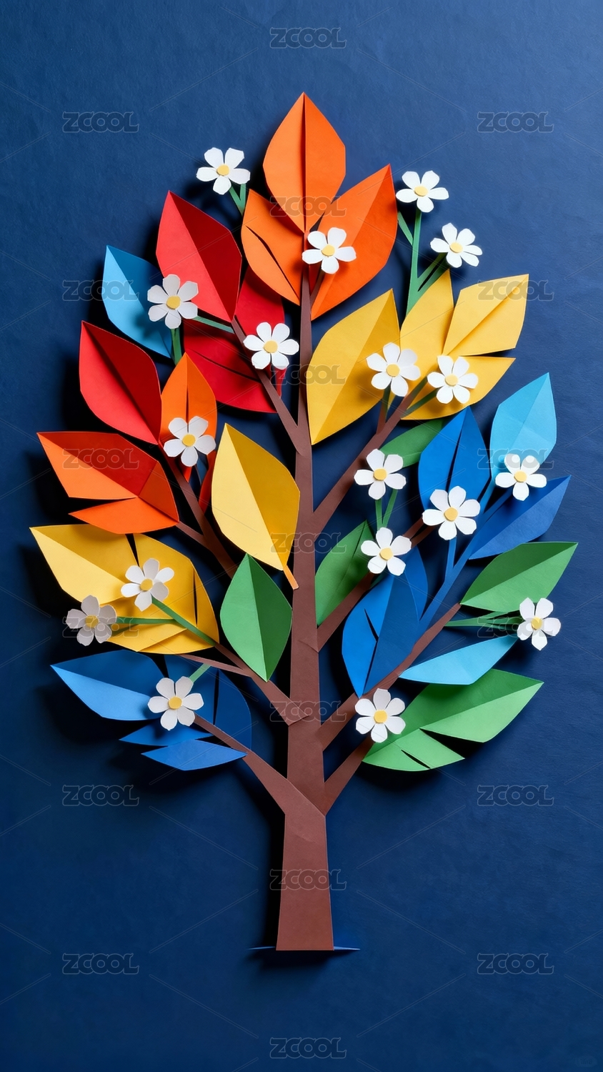 彩色纸树艺术商业壁纸场景