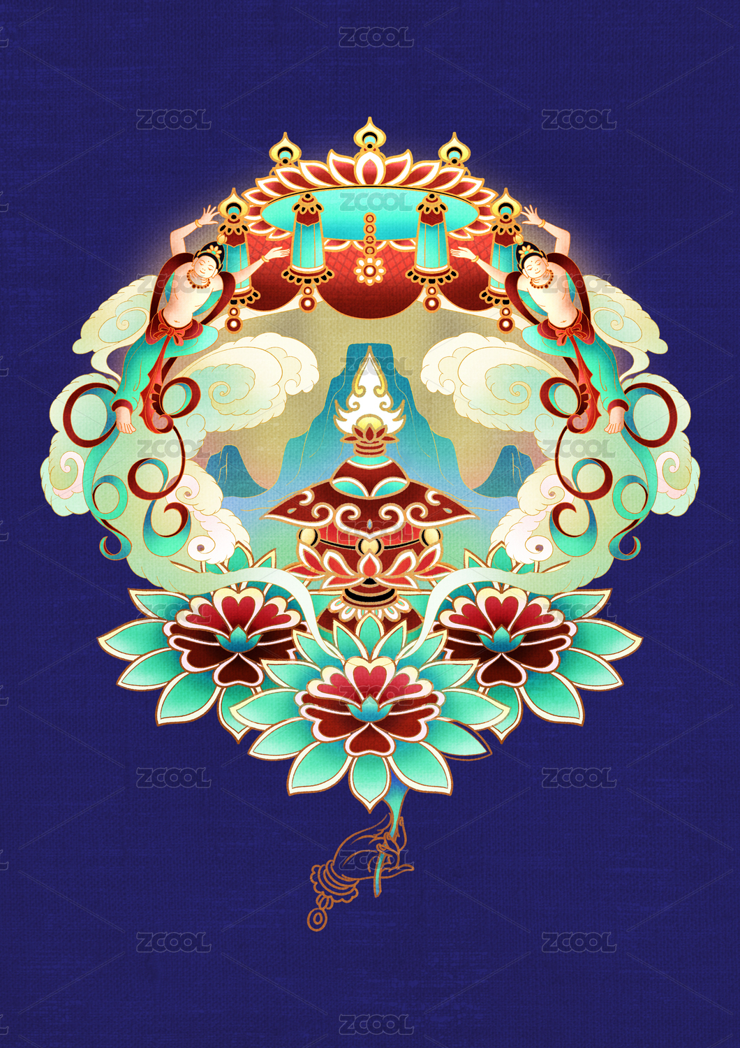 国风国潮敦煌飞天华盖香炉佛手