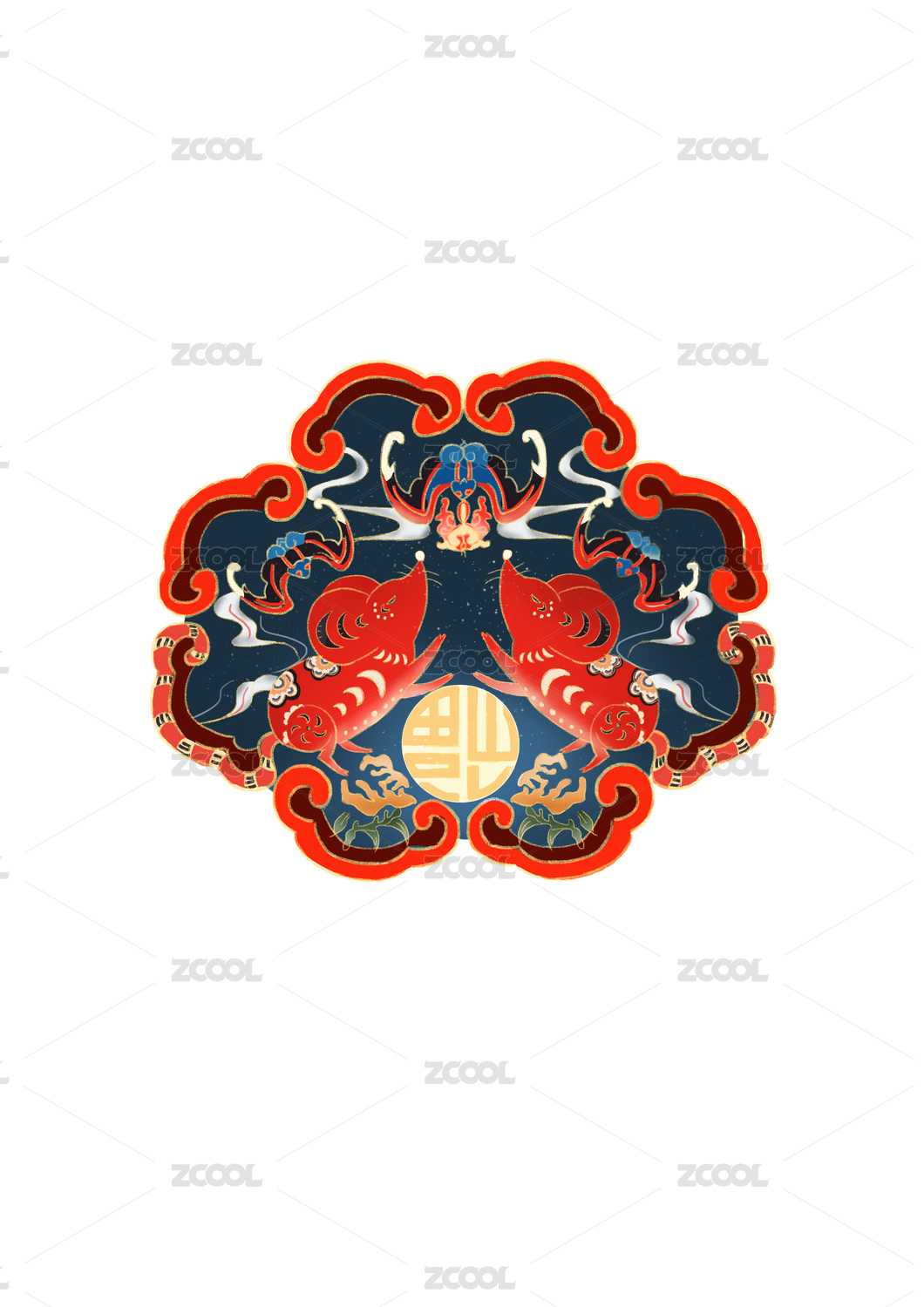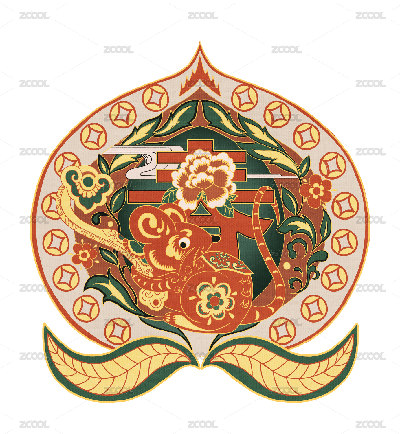 中式纹样生肖鼠福寿双全