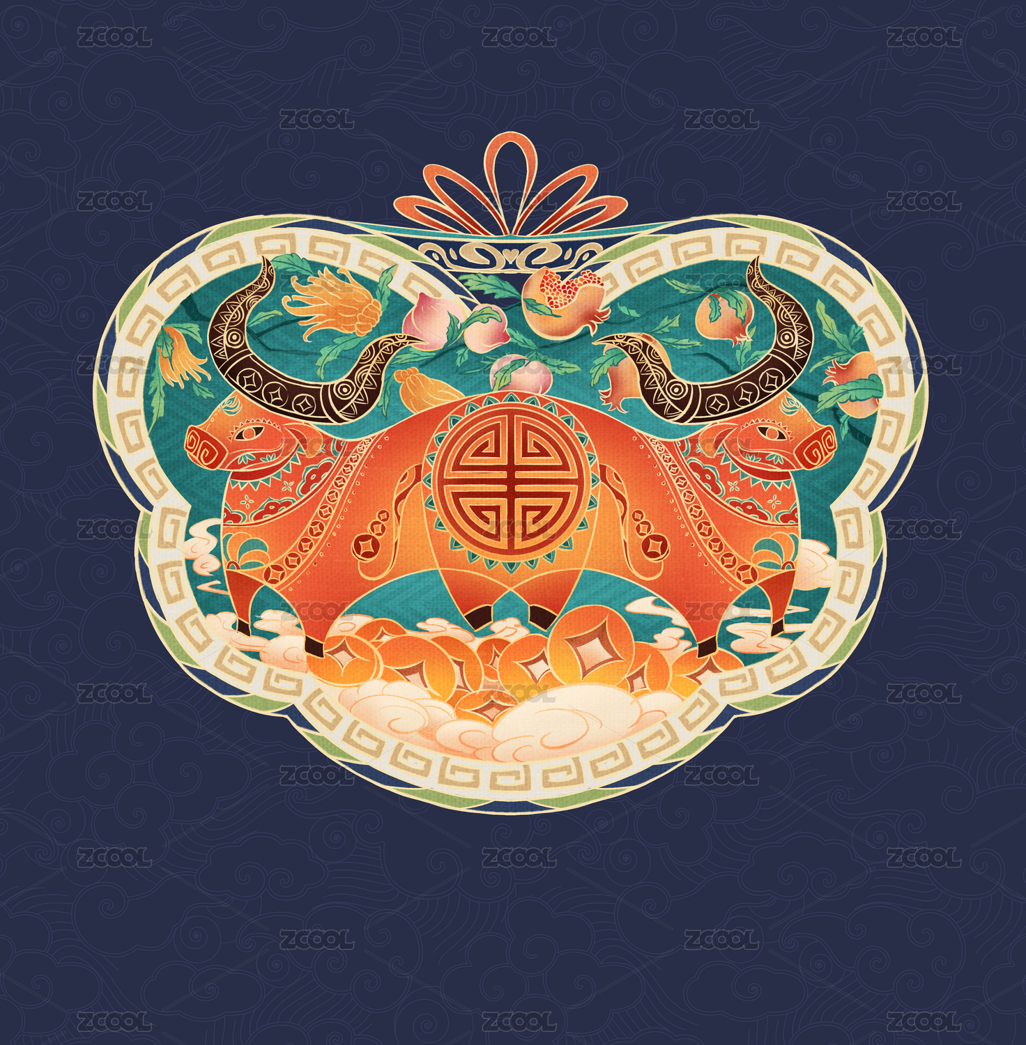 牛年吉祥图腾——金牛站乾坤,牛市连年红