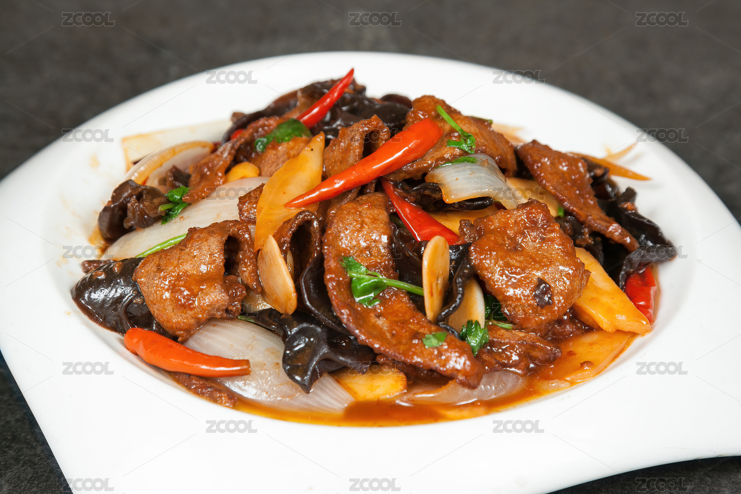 一碟美味诱人的炒牛杂