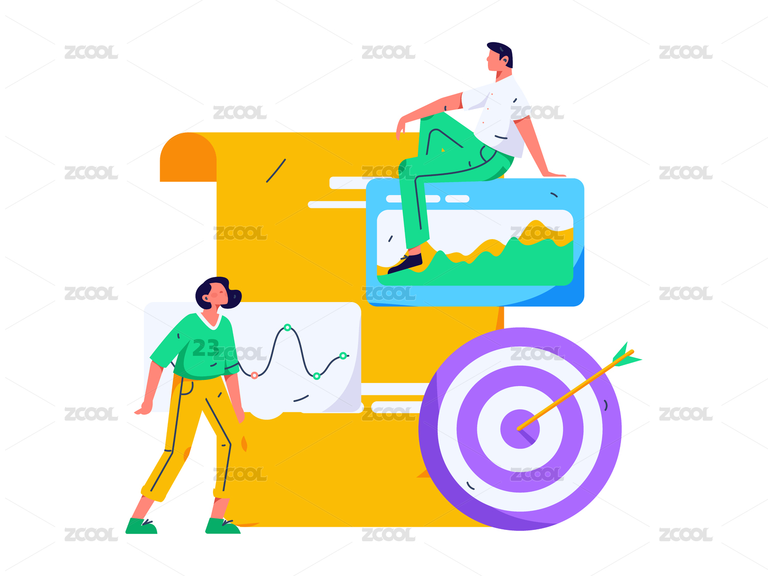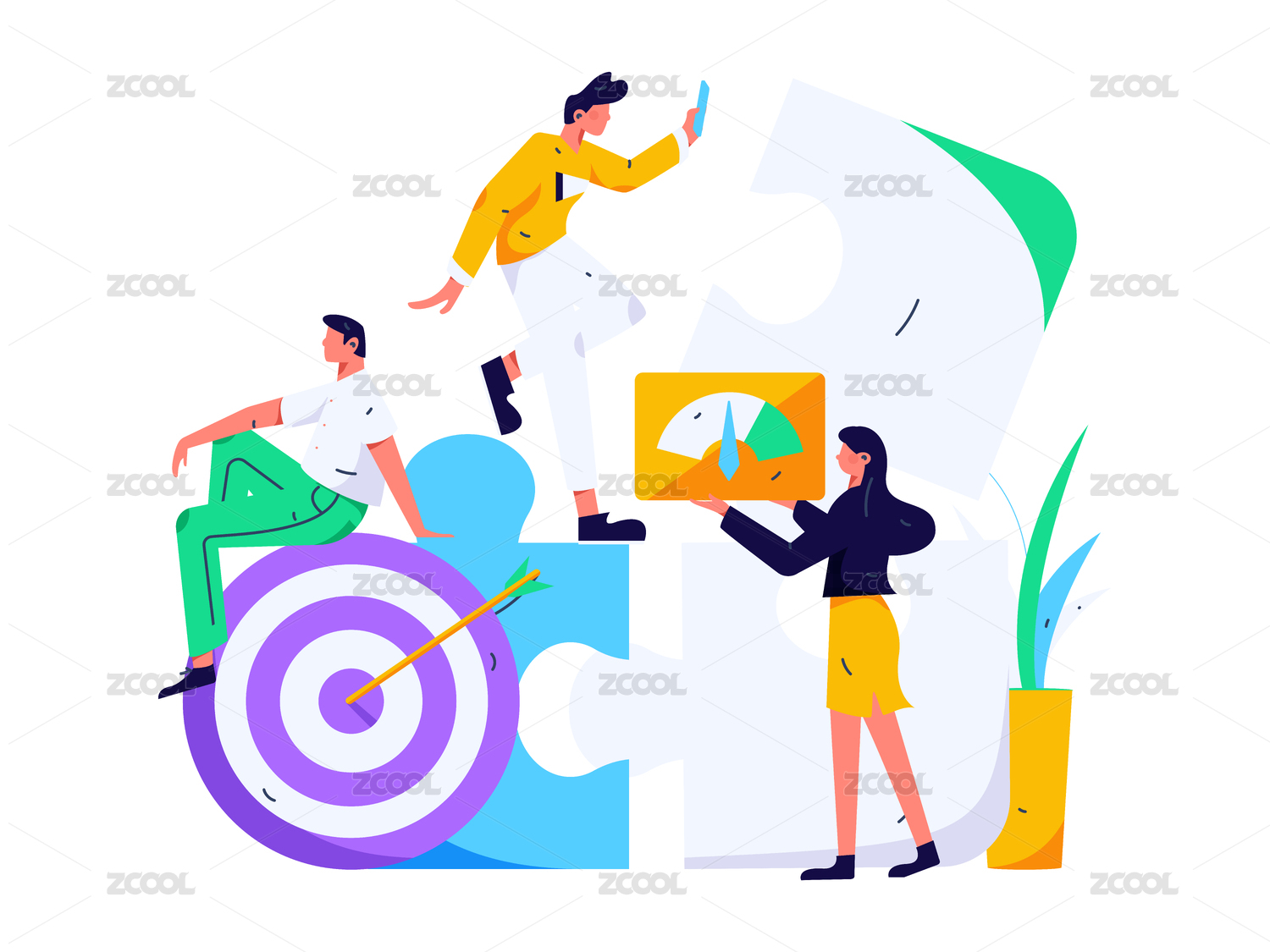 卡通2.5D团队合作共赢职场办公矢量背景插画