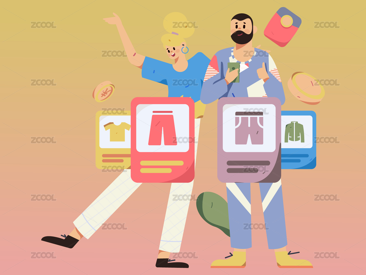 网购电商的男子,扁平手绘人物场景创意概念插画