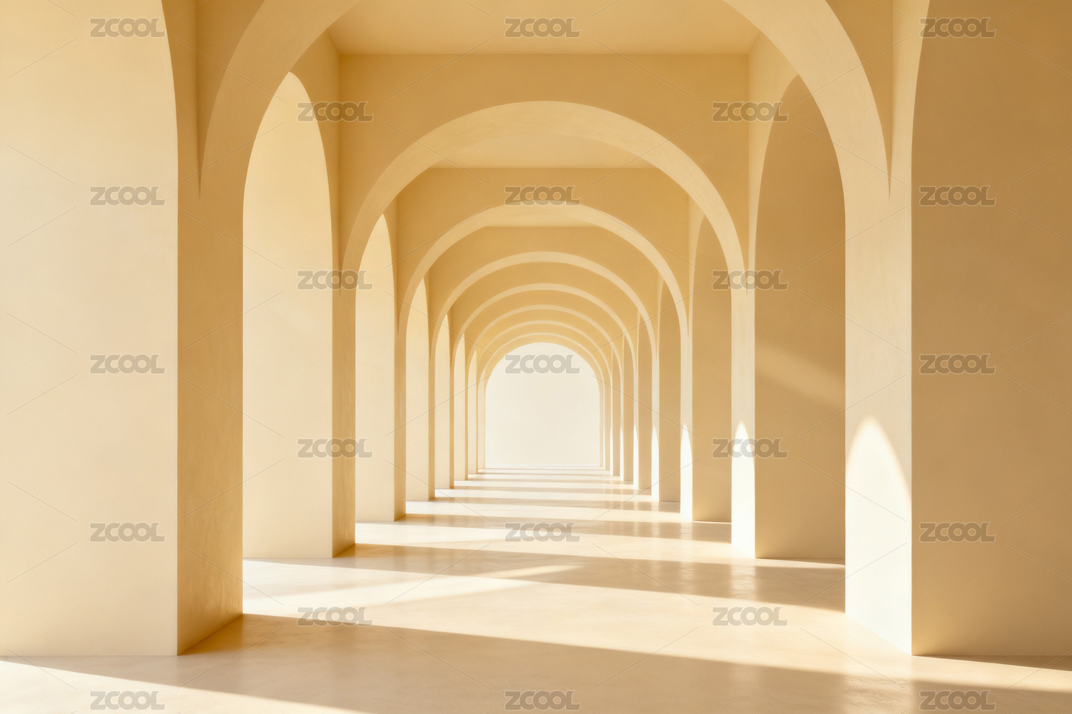 暖黄色拱廊长廊光影效果