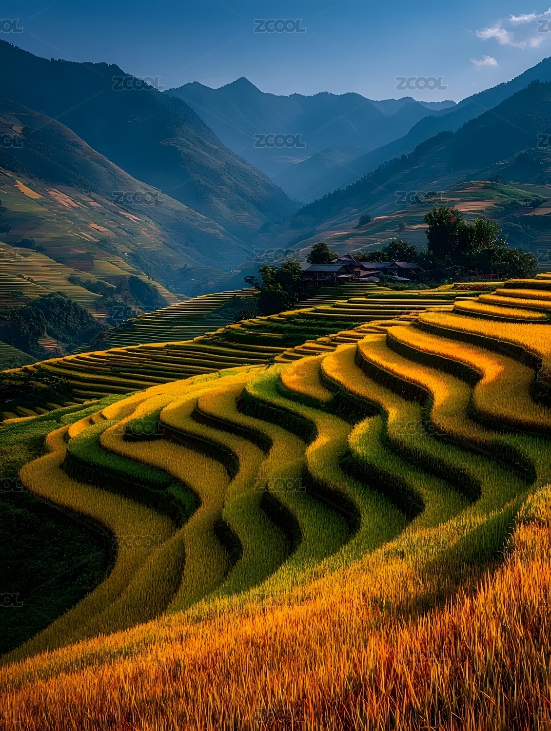 中国广西桂林龙胜龙脊梯田秋天金黄稻子