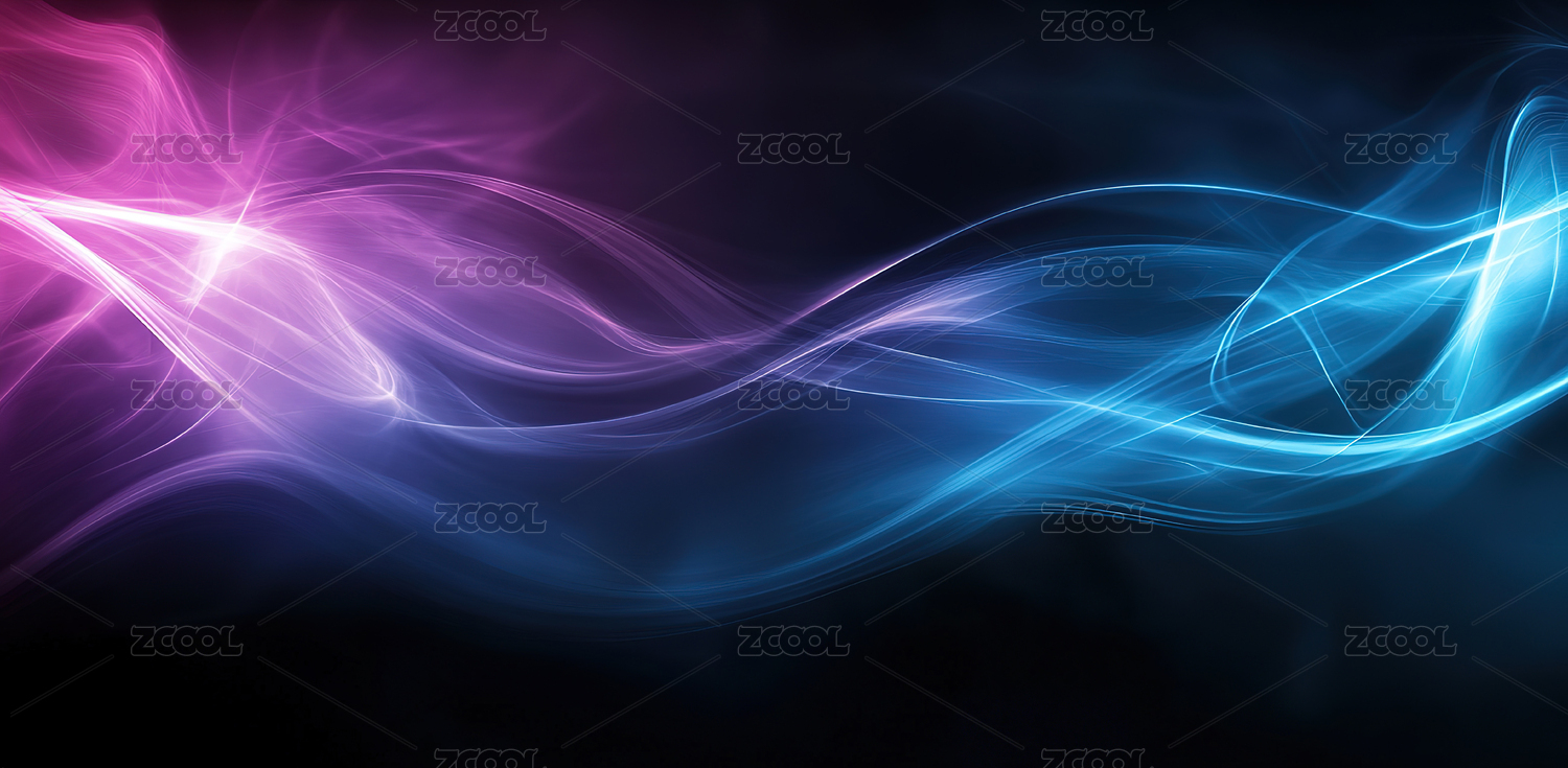 蓝色和紫色的烟雾在深色背景下形成的抽象图