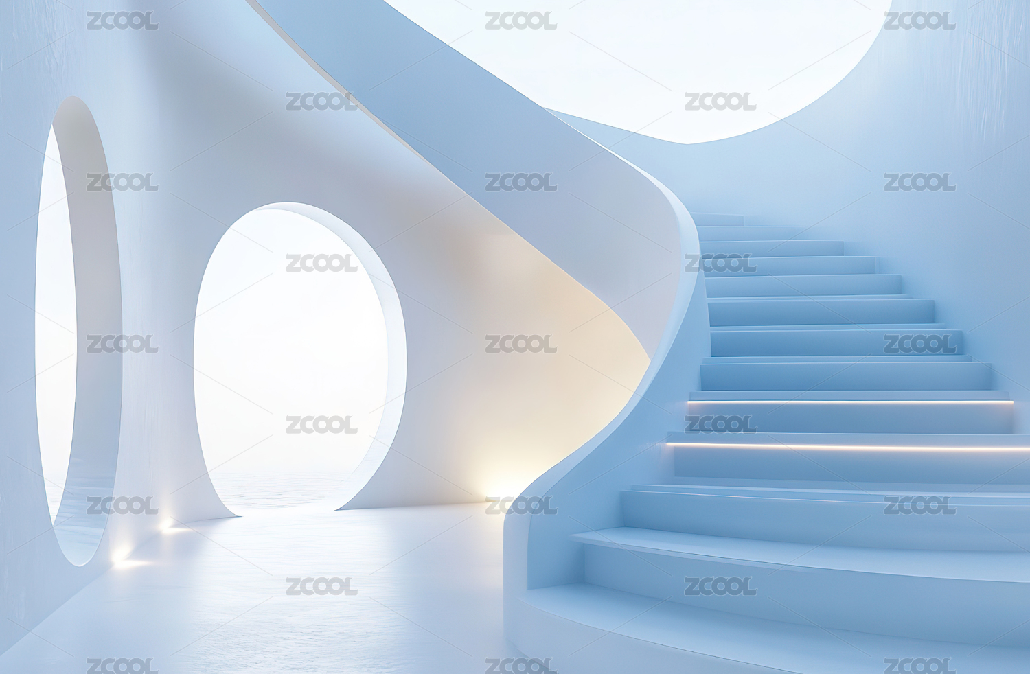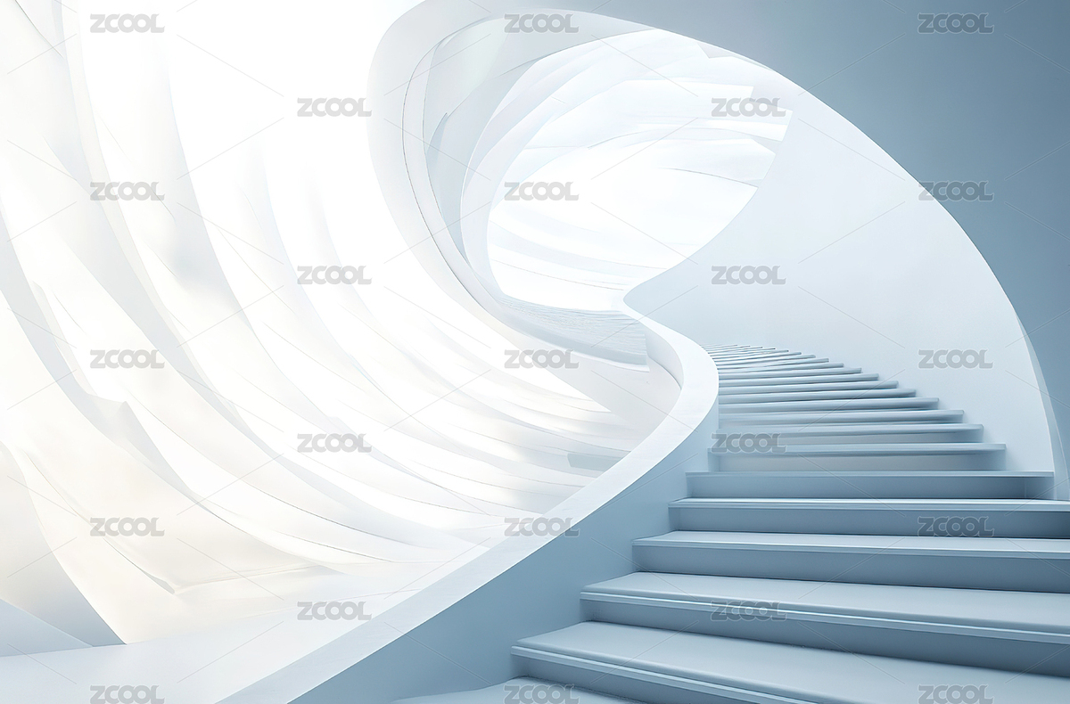 建筑,抽象,弯曲,现代,螺旋梯,形状,创造力,商务,白色,室内