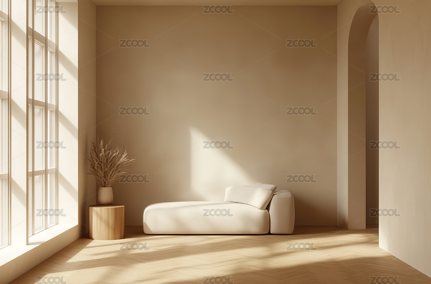 拱形壁龛的米白色客厅